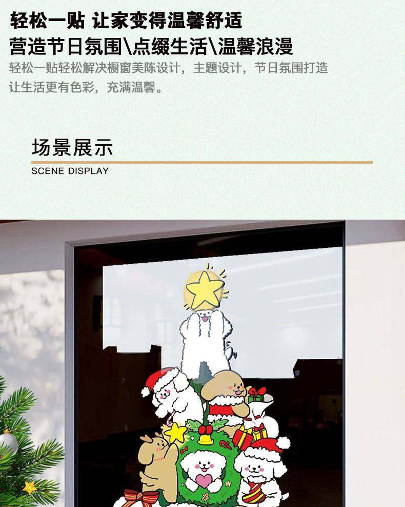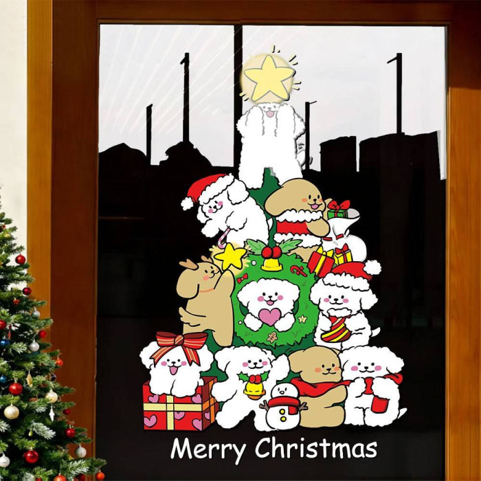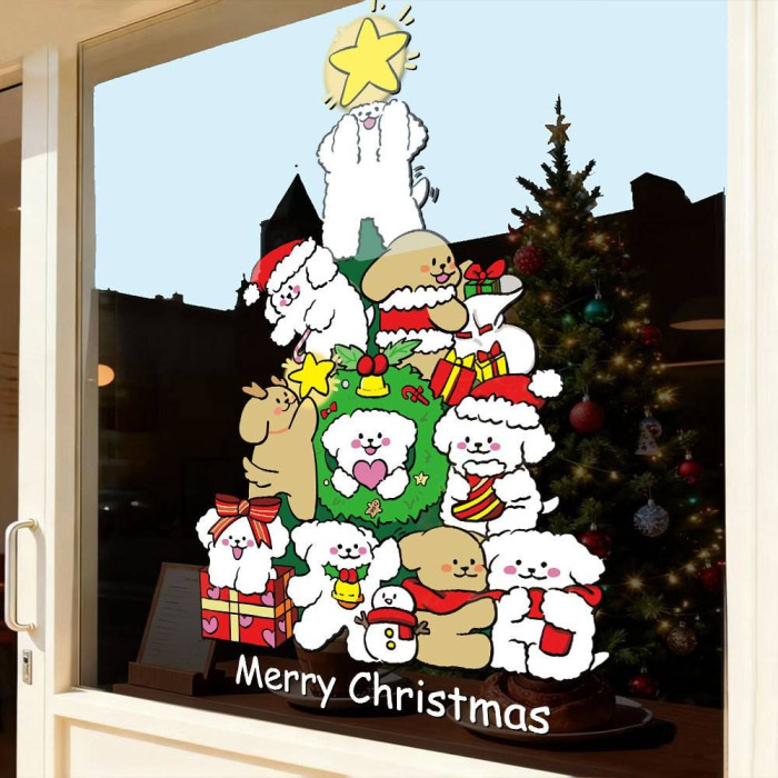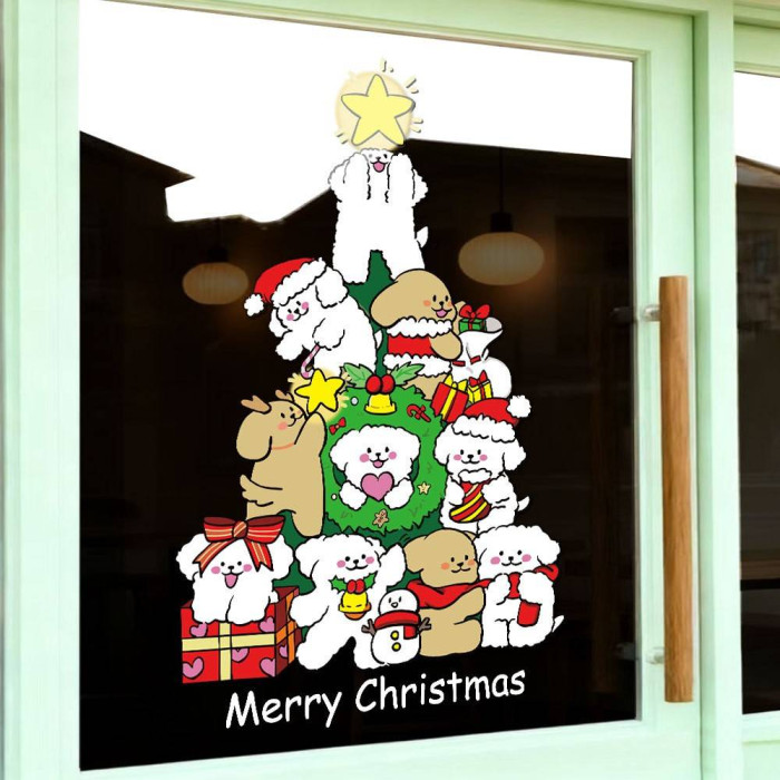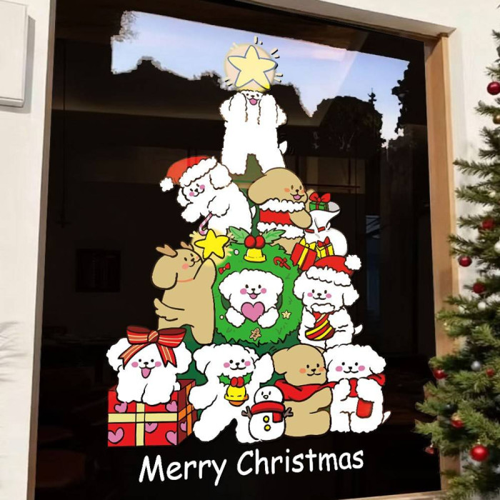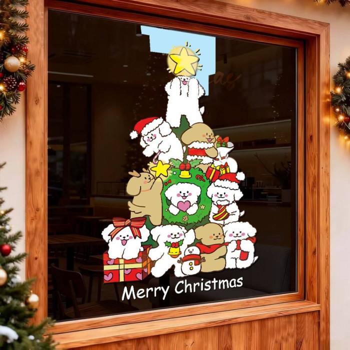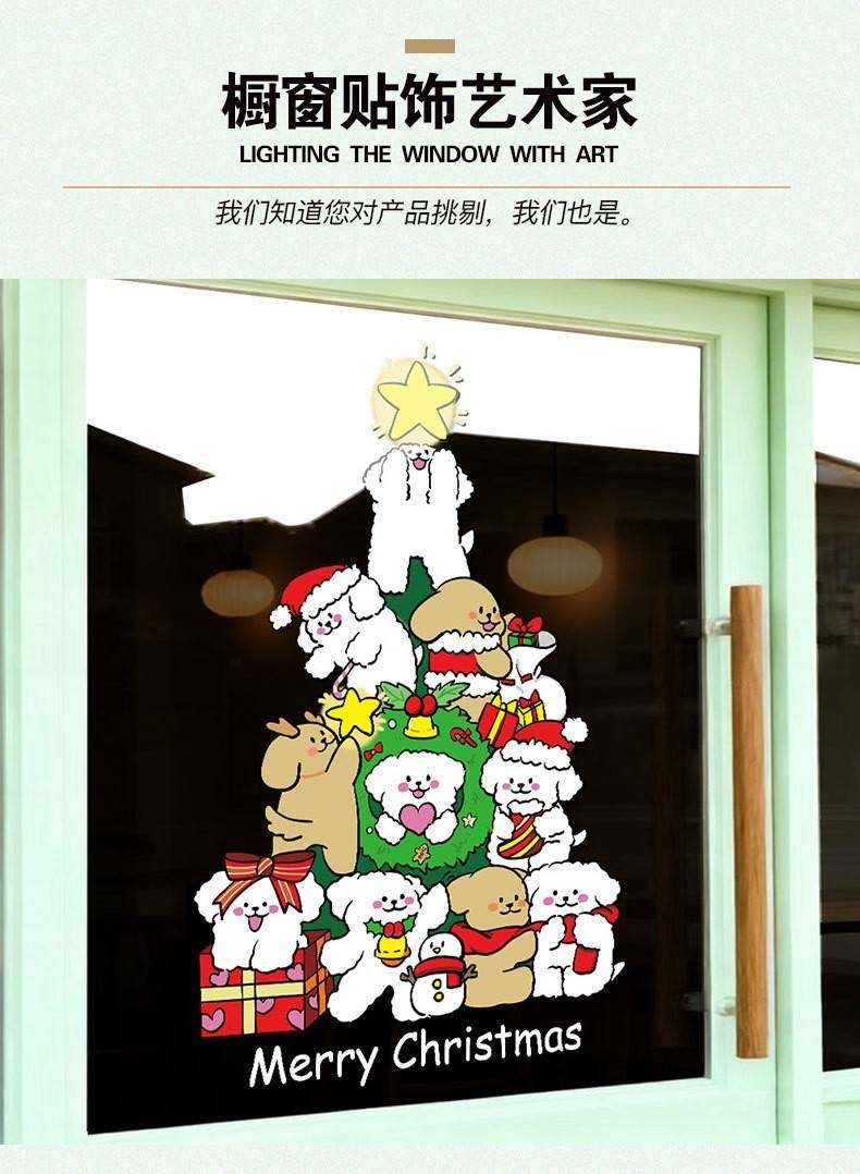 2026新年聖誕節線條小狗聖誕樹裝飾窗花春節元旦玻璃門貼紙窗貼畫