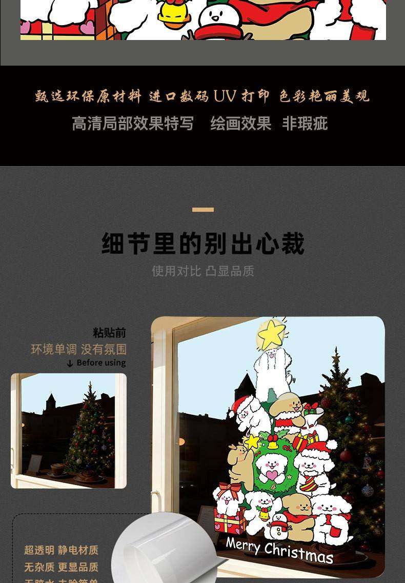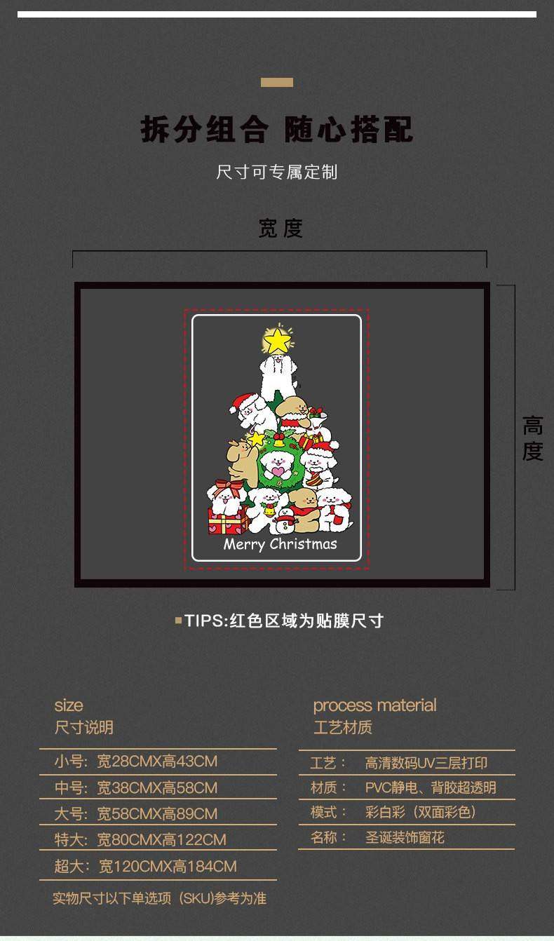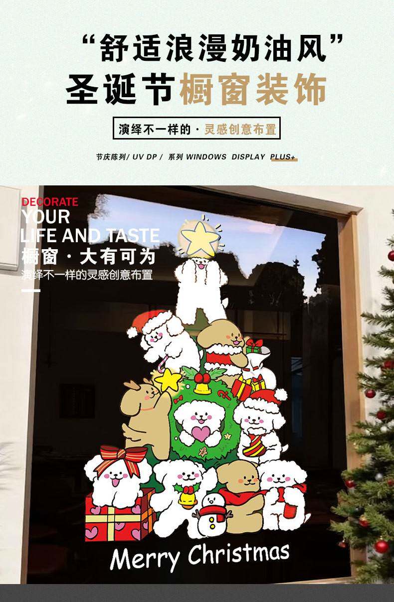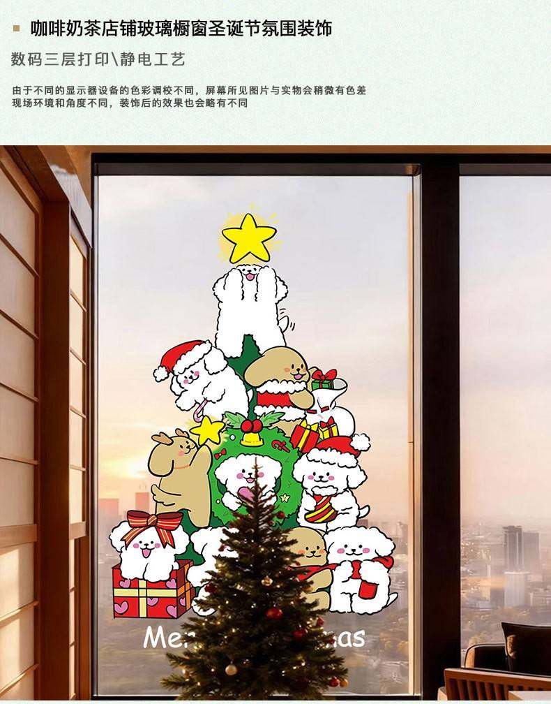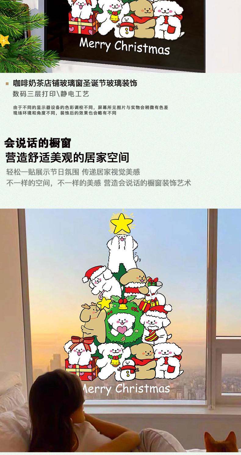 2026新年聖誕節線條小狗聖誕樹裝飾窗花春節元旦玻璃門貼紙窗貼畫