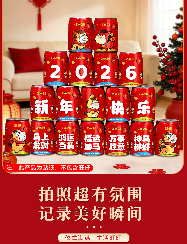 2026新年旺仔貼紙可樂春節年會年夜飯氛圍裝扮用品馬年裝飾貼