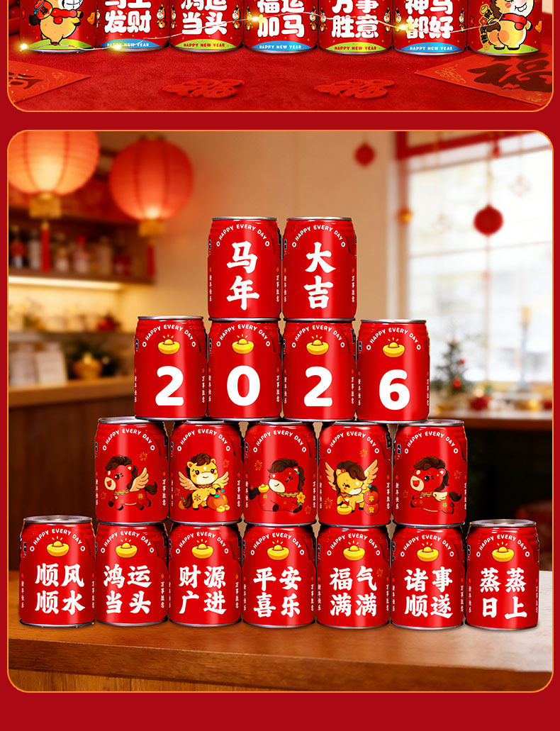 2026新款不乾膠旺仔貼紙可樂罐貼馬年春節幼兒園跨年氛圍教室布置