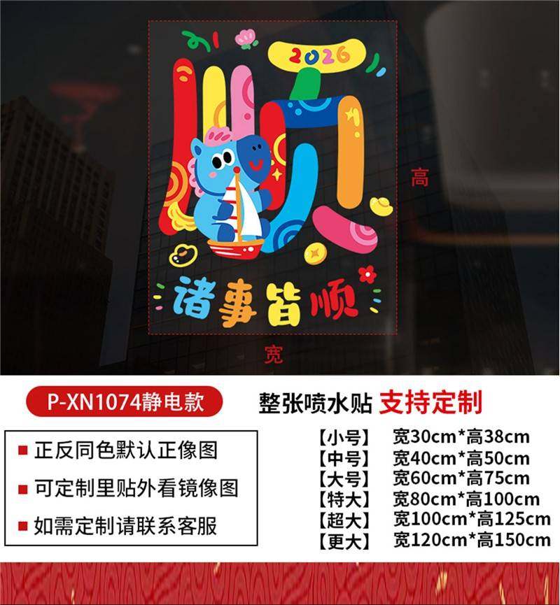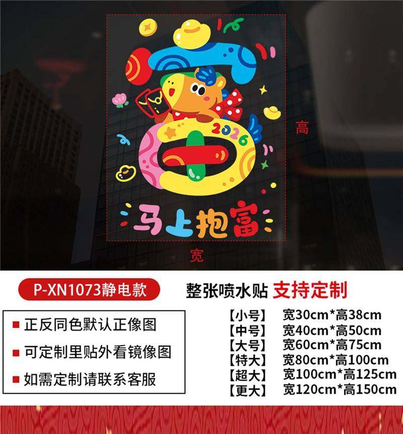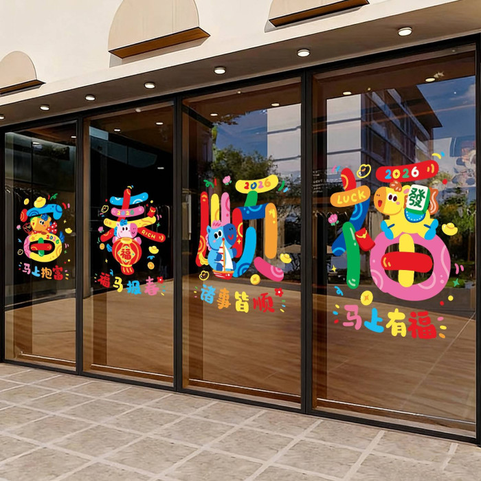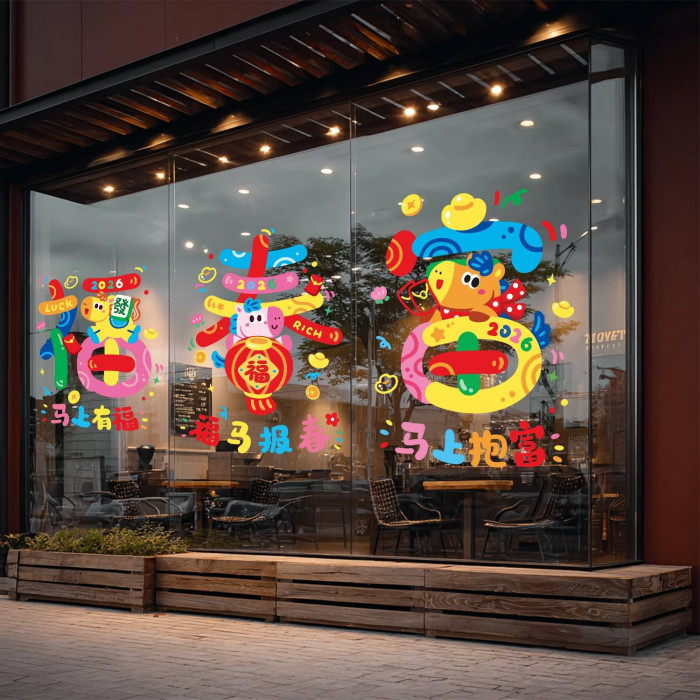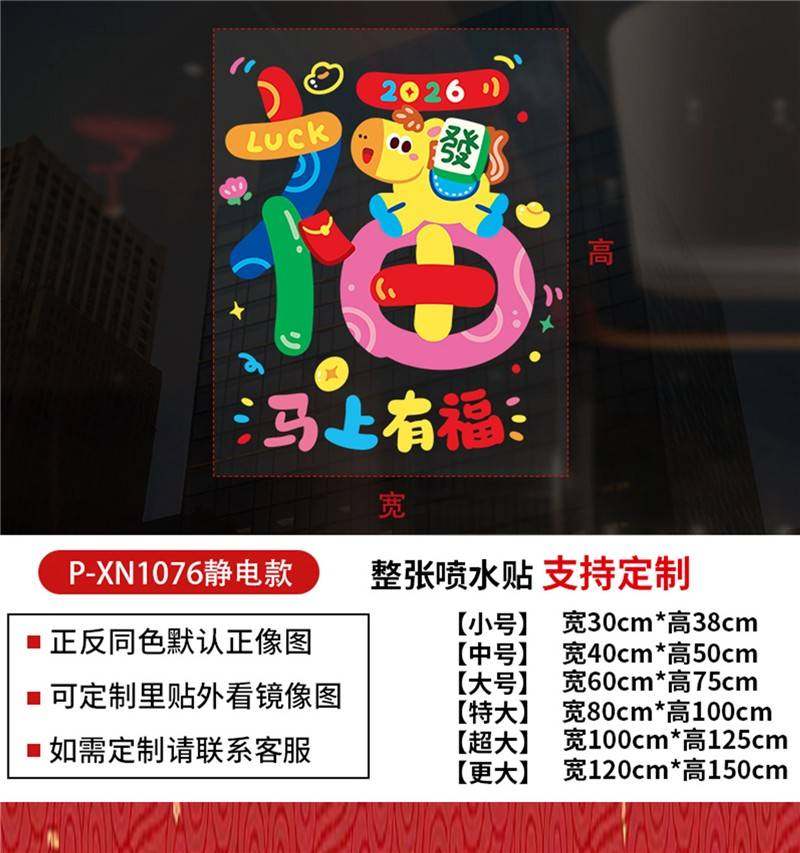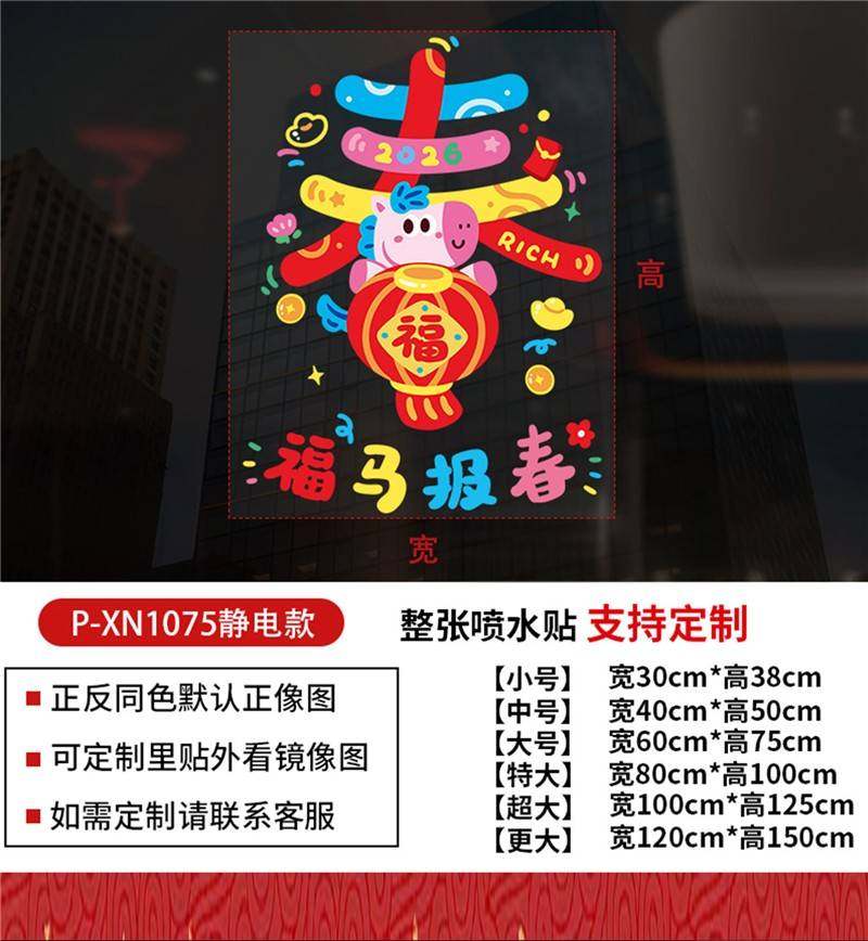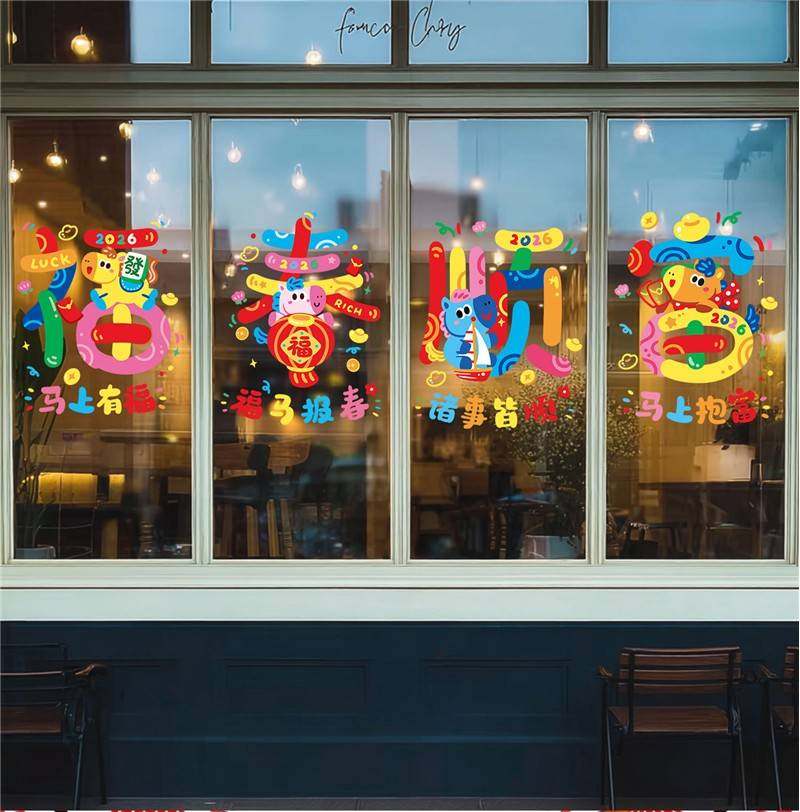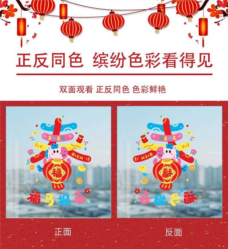 2026新年裝飾馬年窗花大號元旦氣氛玻璃貼畫彩色卡通小馬靜電貼紙