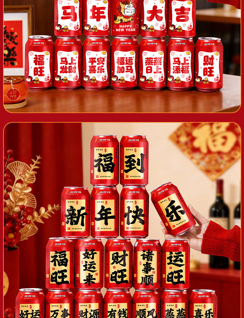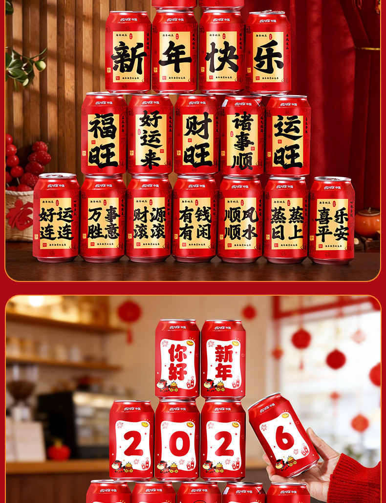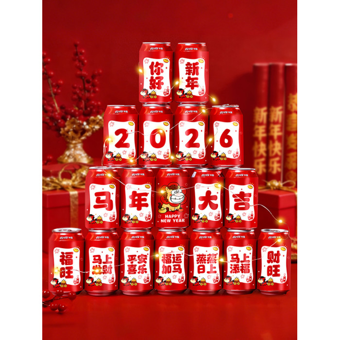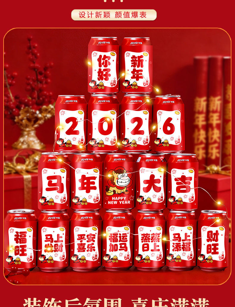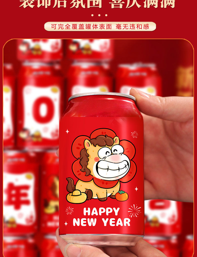 2026新年可樂貼紙旺仔飲料不乾膠馬年春節年夜飯年會布置用品