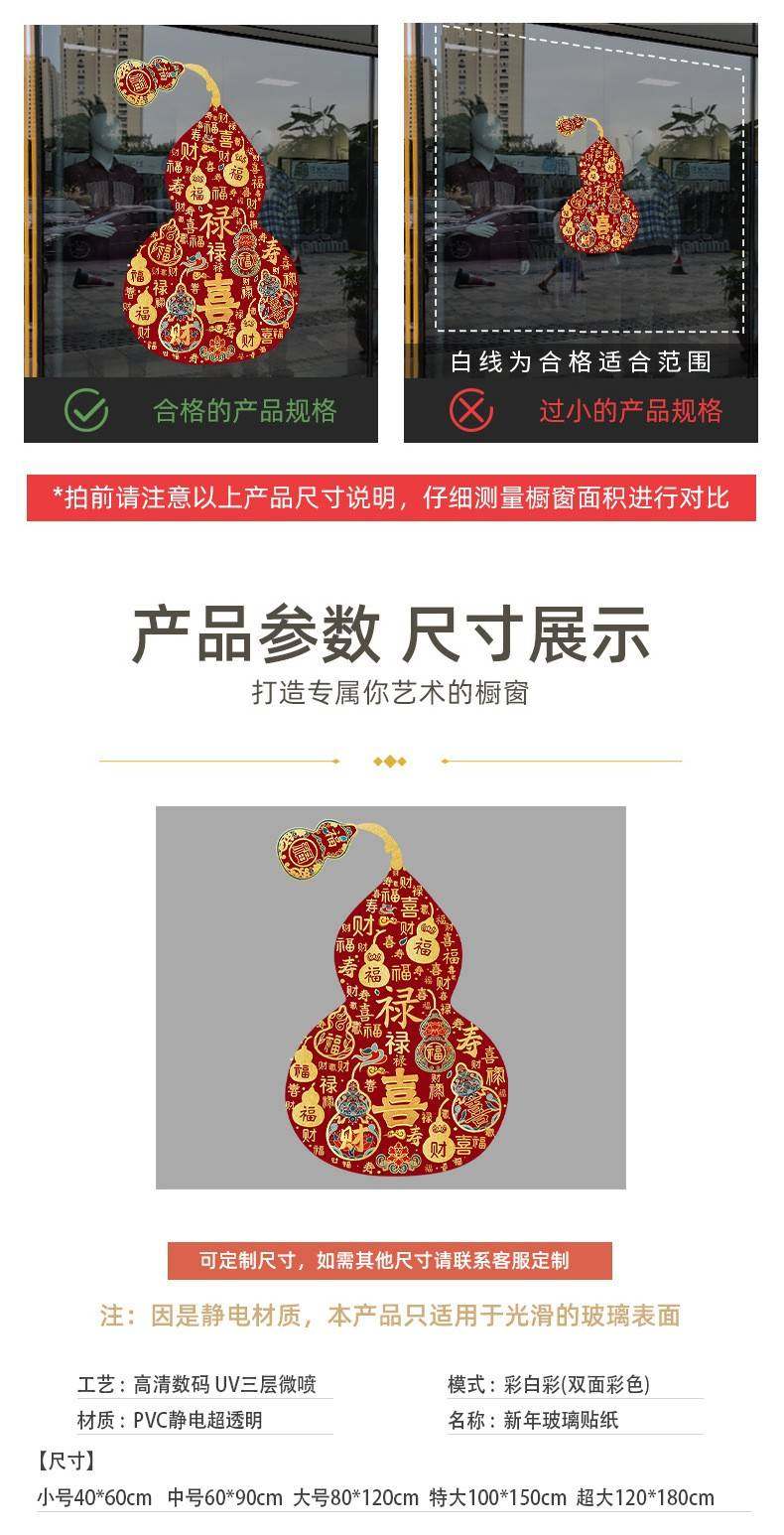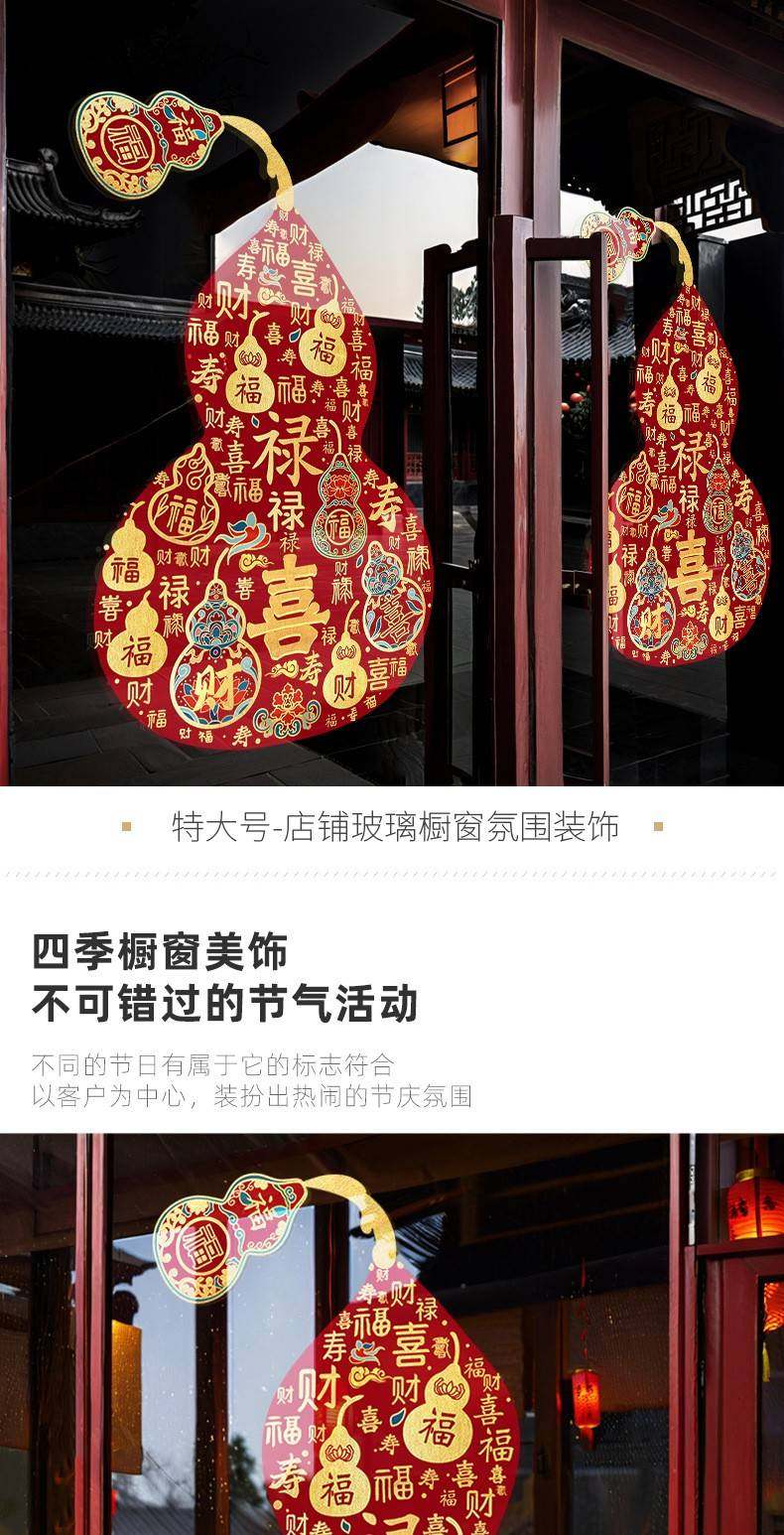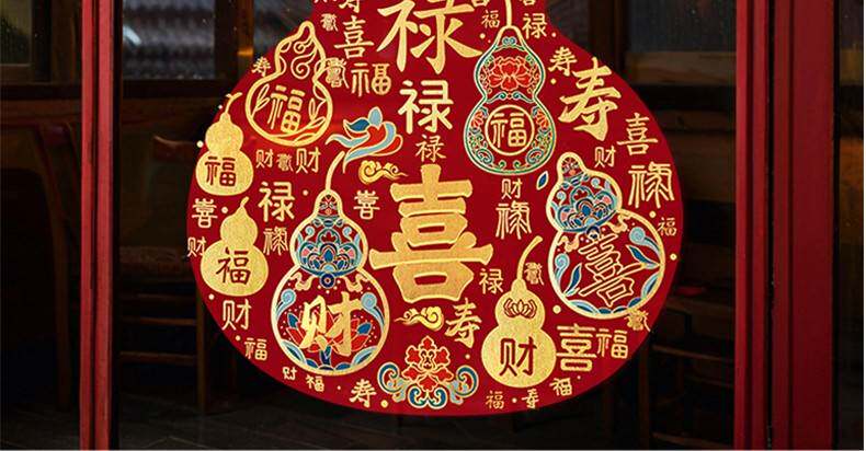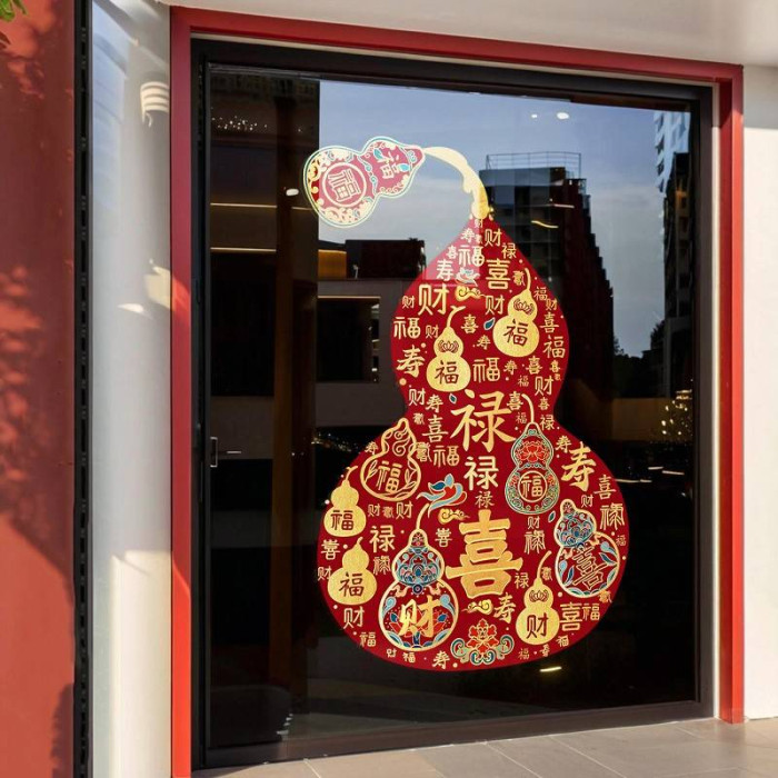 2026過馬年彩色福祿窗花新年靜電玻璃門葫蘆春節貼紙商場櫥窗裝飾