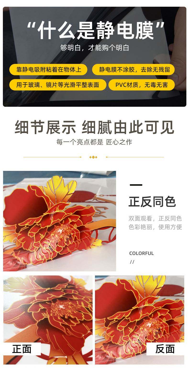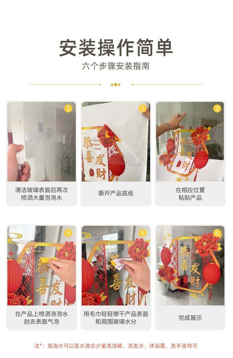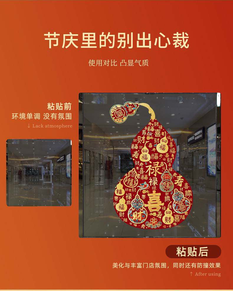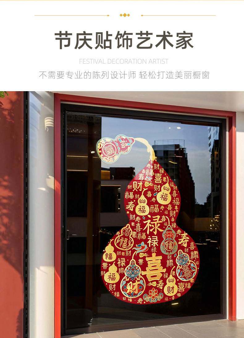 2026過馬年彩色福祿窗花新年靜電玻璃門葫蘆春節貼紙商場櫥窗裝飾