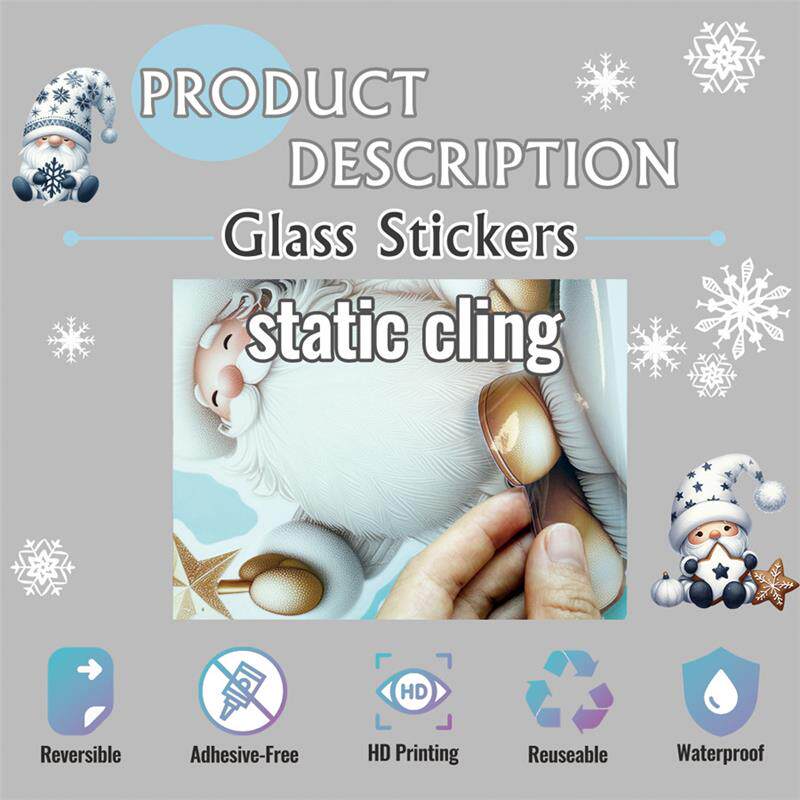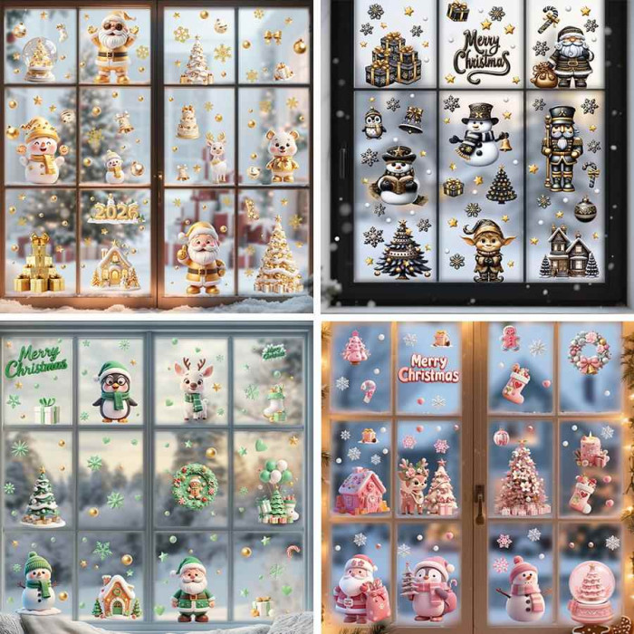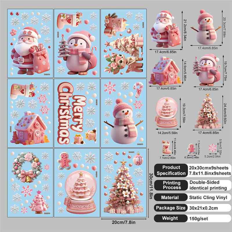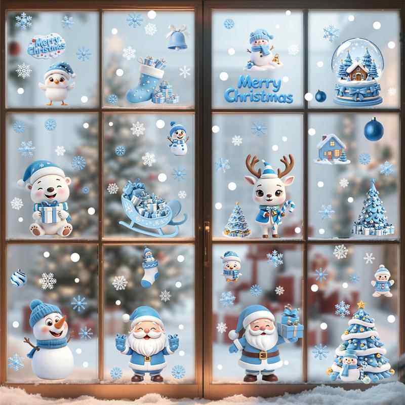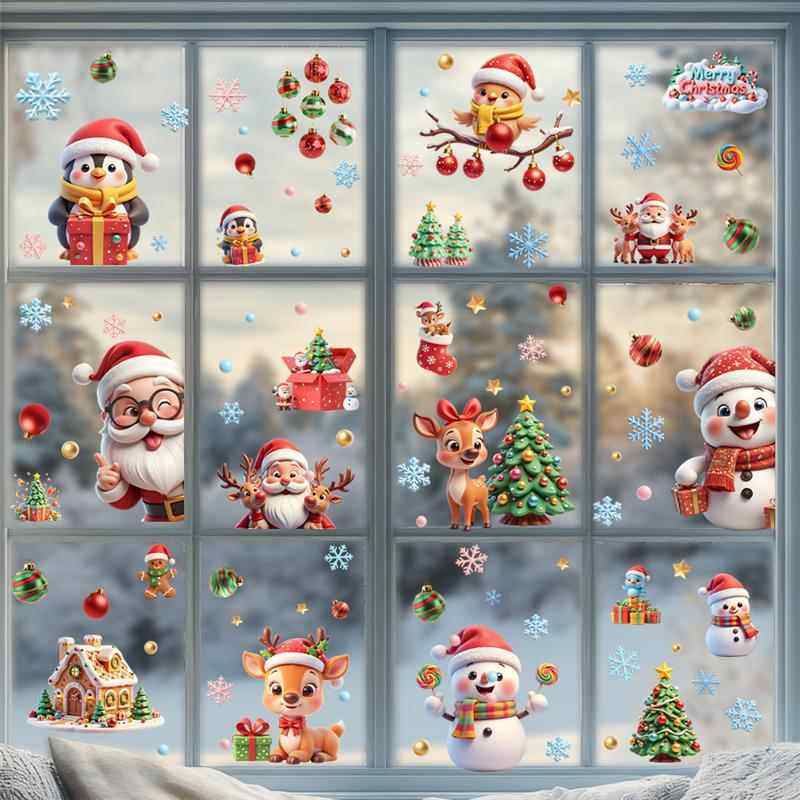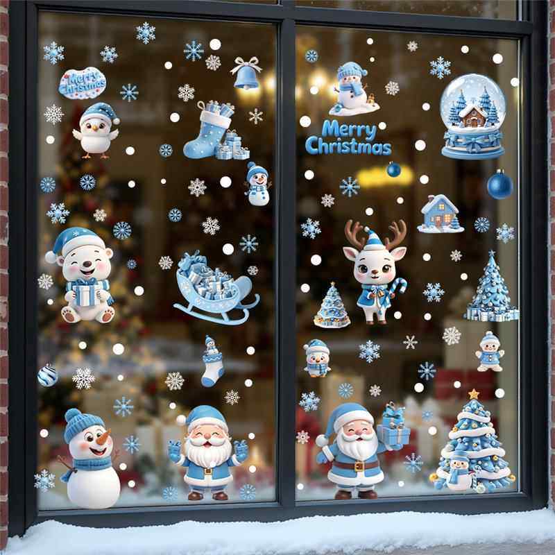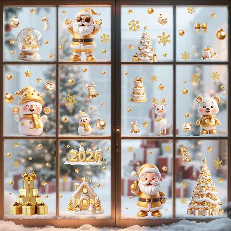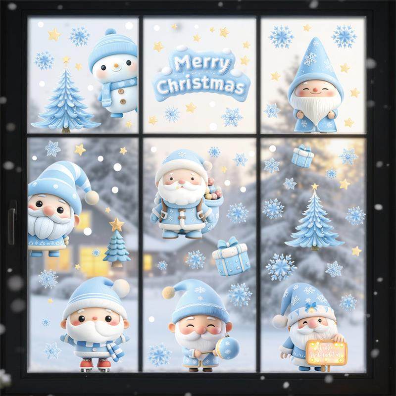 9張/套聖誕節靜電玻璃窗貼2026藍綠紅黑金聖誕老人麋鹿雪人