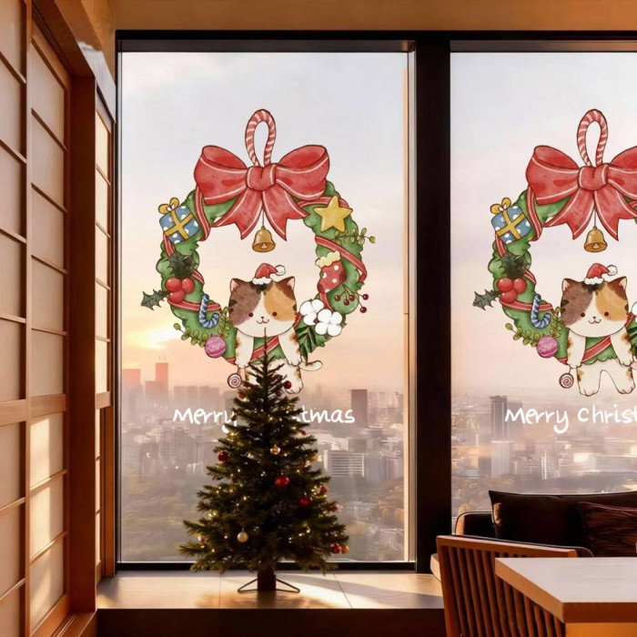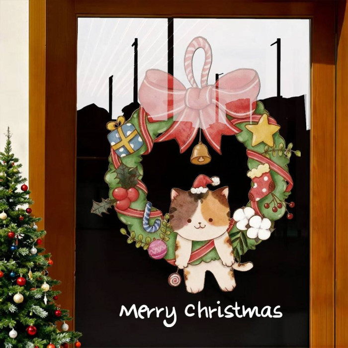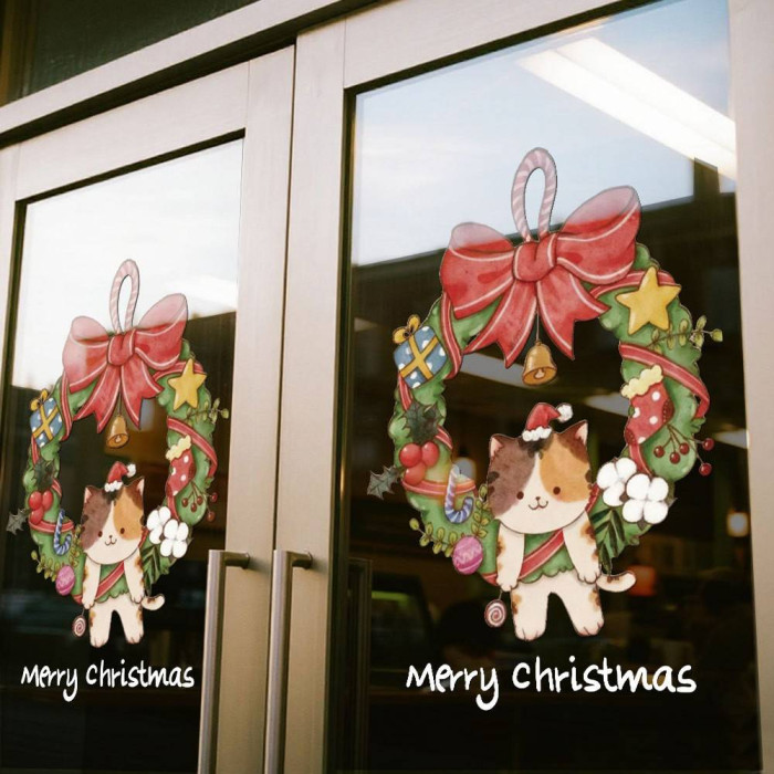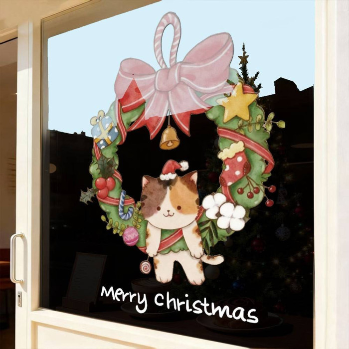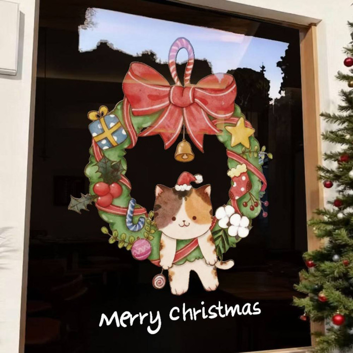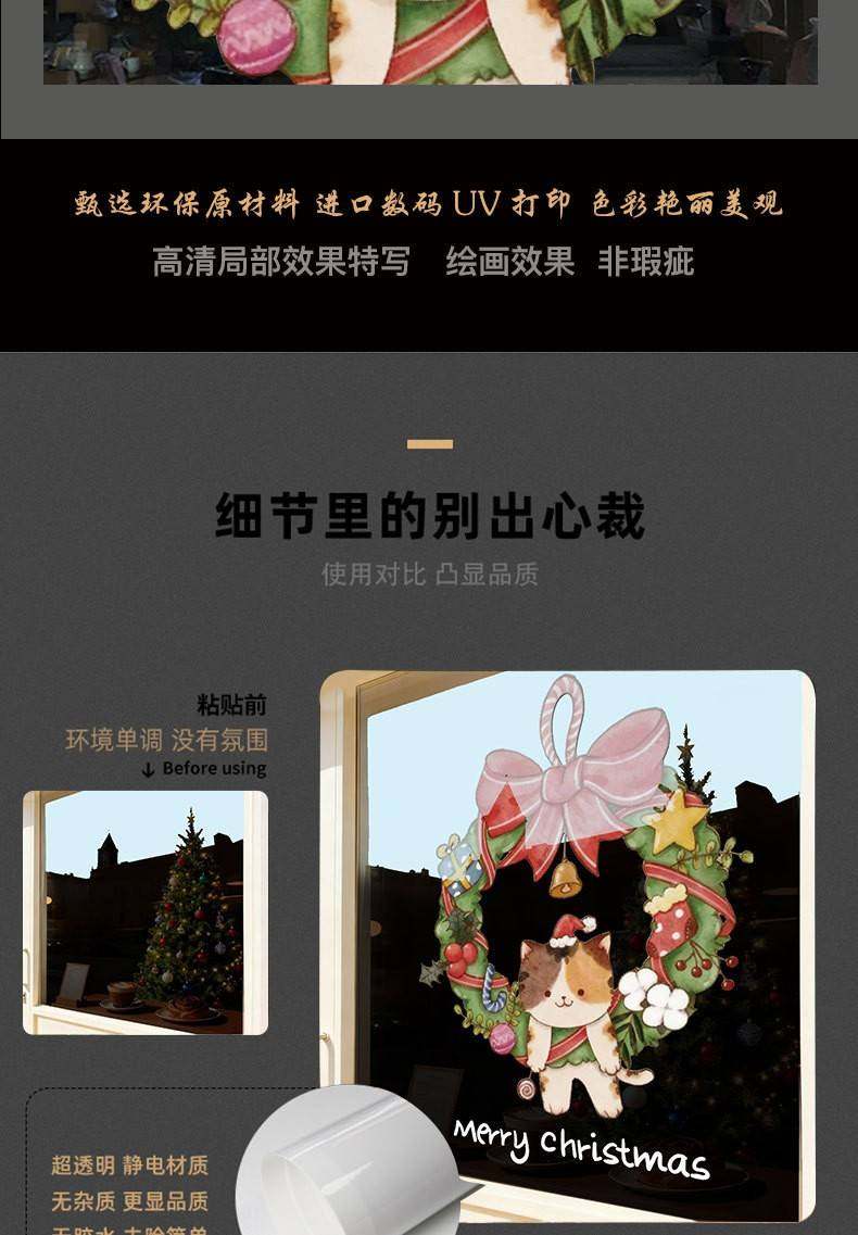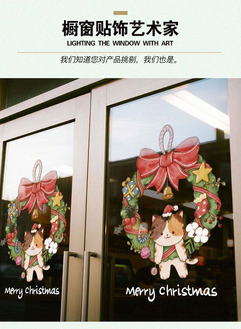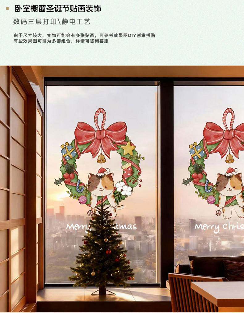 2026聖誕節裝飾品靜電貼紙布置花環聖誕老人商場櫥窗玻璃門貼窗貼