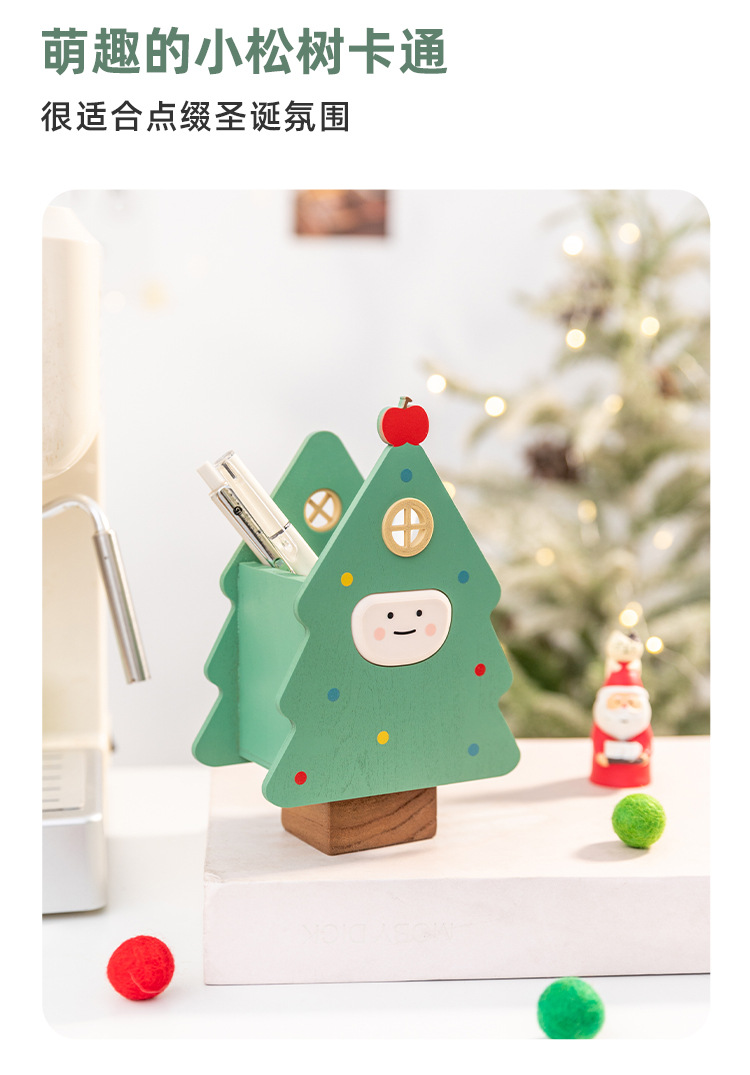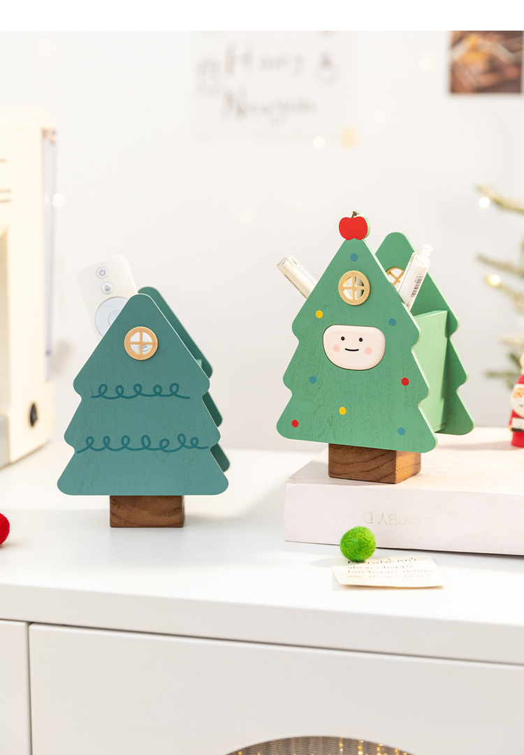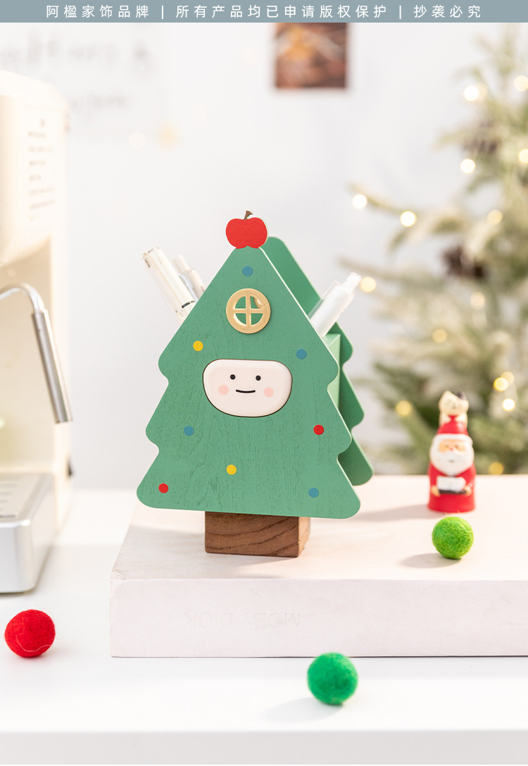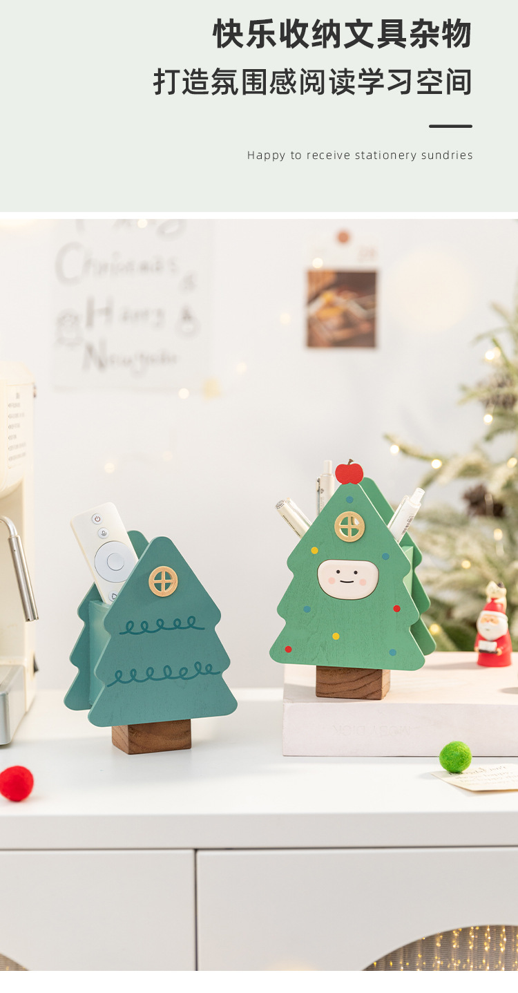 阿楹 聖誕樹筆筒藝術化妝刷男女孩兒童書桌置物架收納盒實用禮品