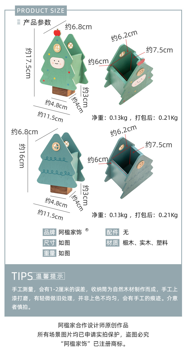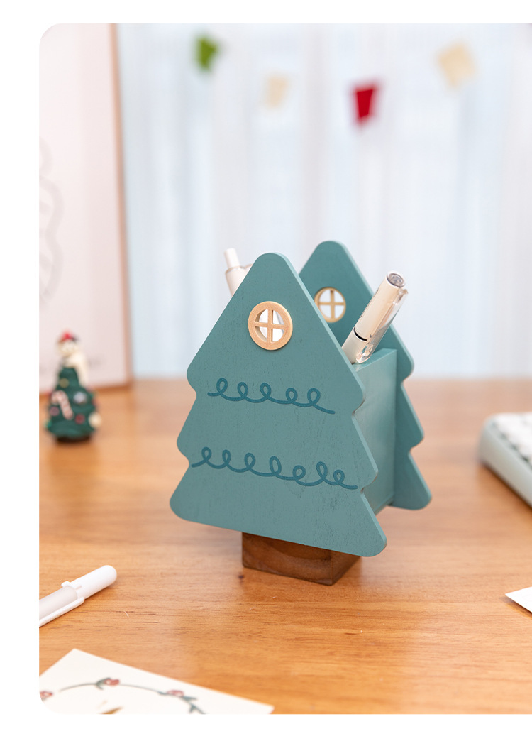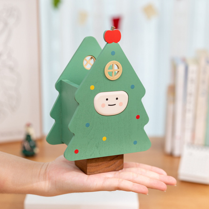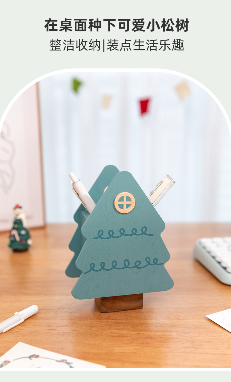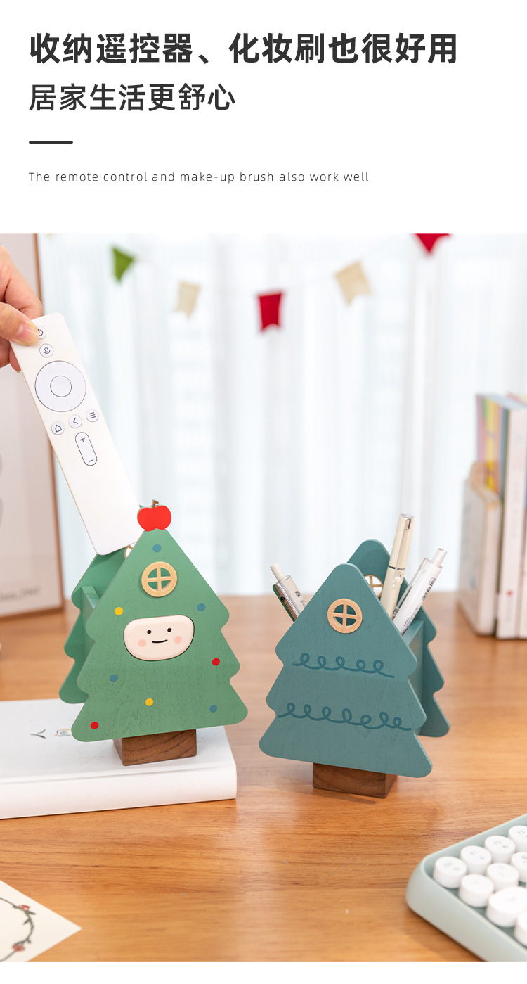 阿楹 聖誕樹筆筒藝術化妝刷男女孩兒童書桌置物架收納盒實用禮品