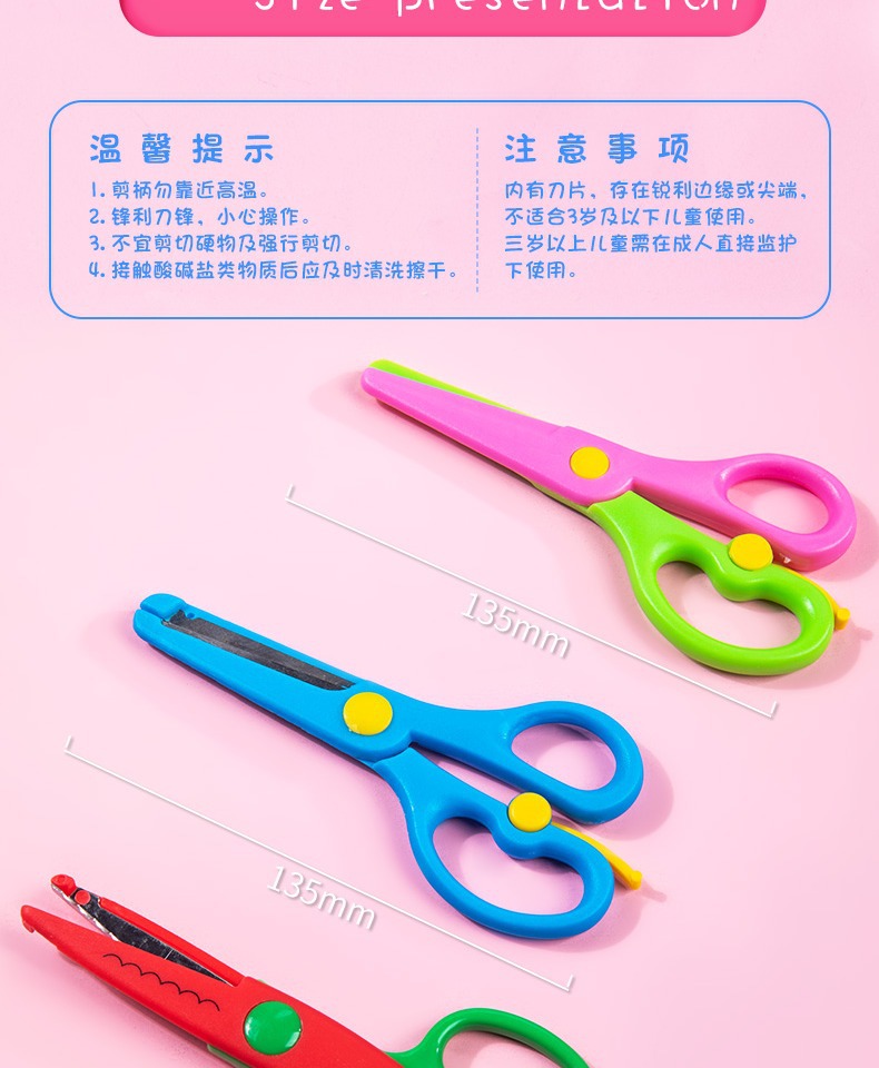 兒童剪刀手工套裝塑膠玩具可攜式圓頭剪紙折紙波浪花邊彩色剪子