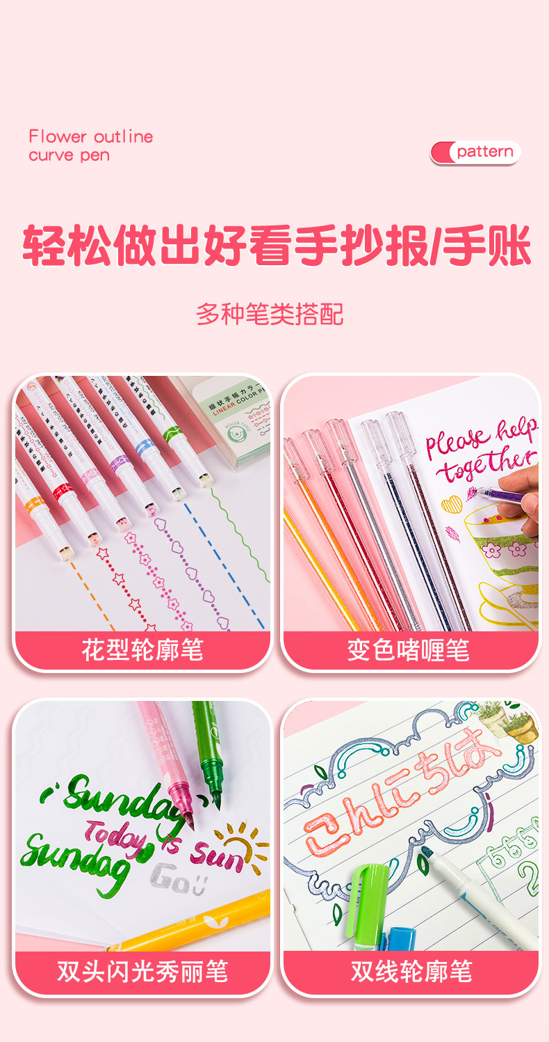 雙線輪廓筆馬克筆繪畫書寫兒童diy閃光易乾粗頭手賬筆花型輪廓筆