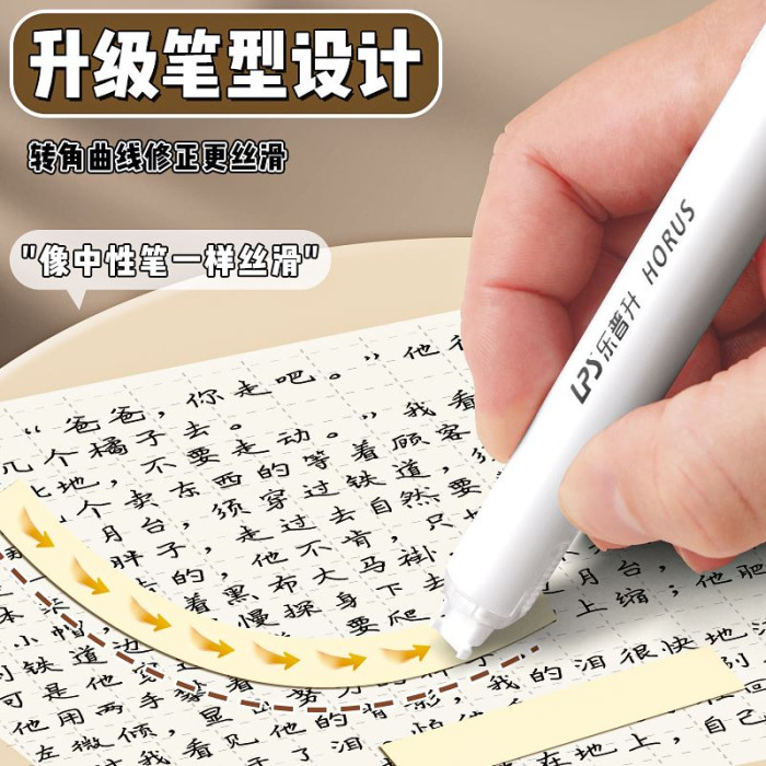 樂普升筆式修正帶小學生專用米黃色隱形帶塗改帶初中生改正帶替換芯護眼色靜音樂普生大容量黑科技女生高顔值