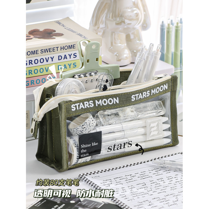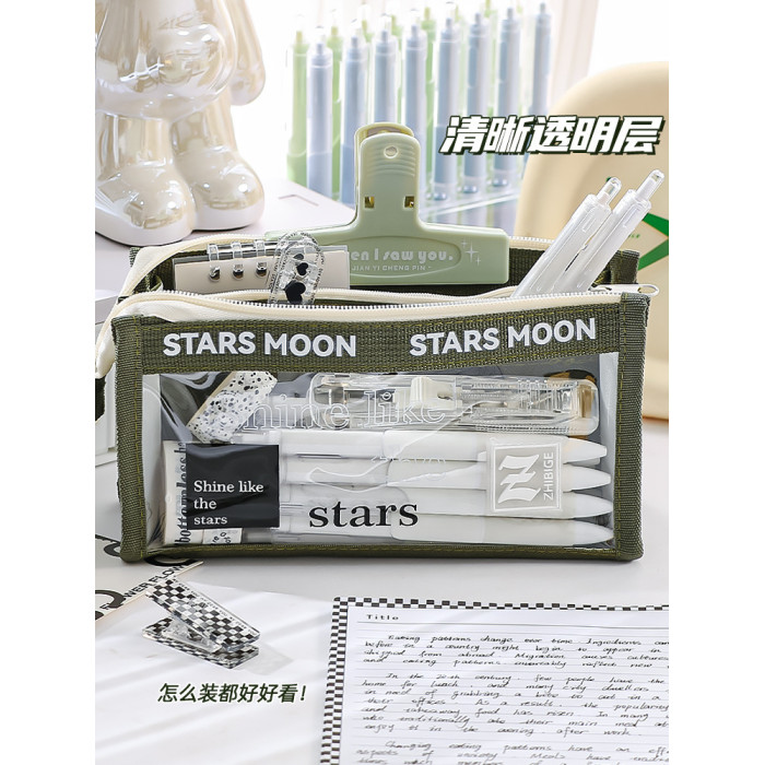 三角形立體透明筆袋初中男生大容量高顔值痛包筆袋簡約男生文具袋