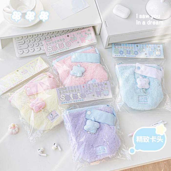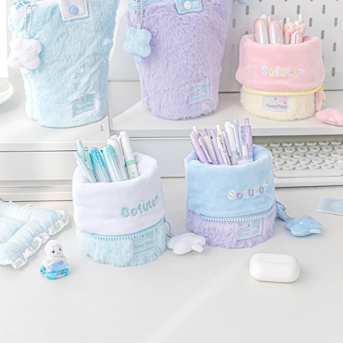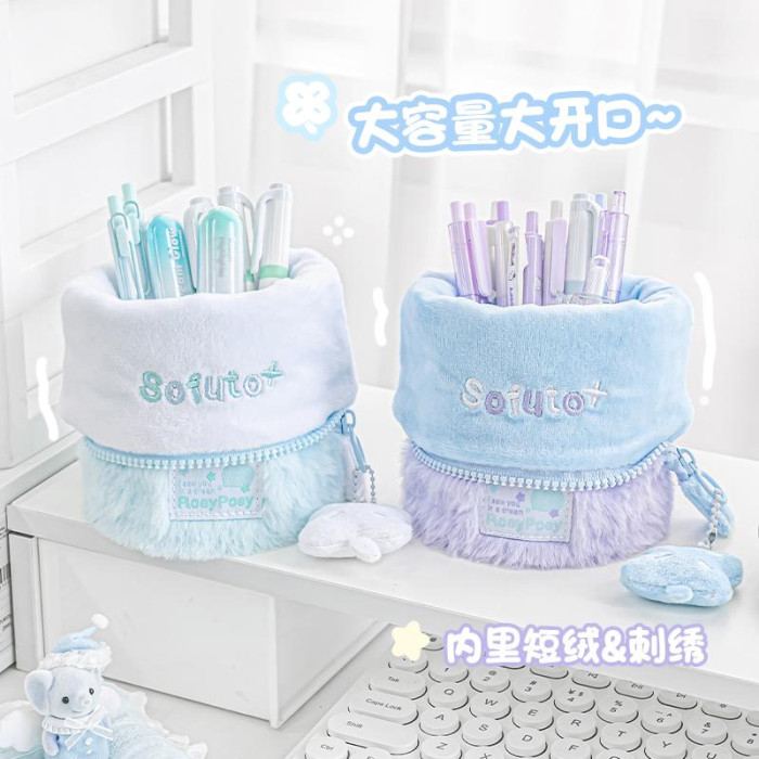 RosyPosy柔設毛絨可立竪翻筆袋高顔值女生大容量簡約手提毛茸筆袋