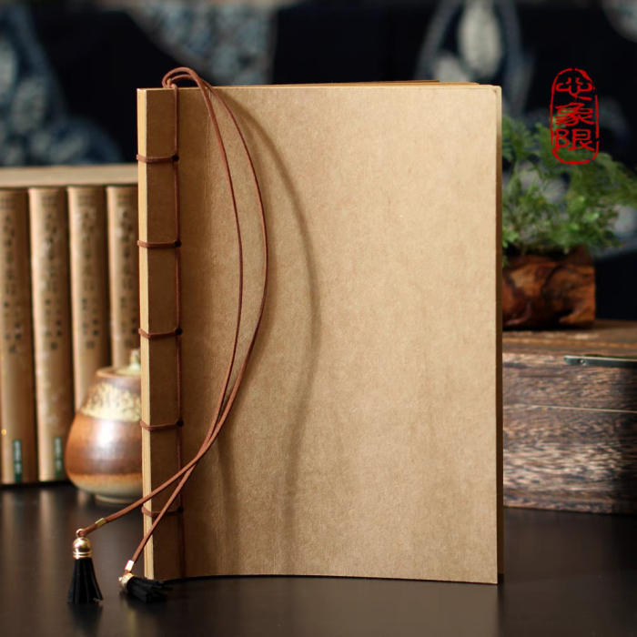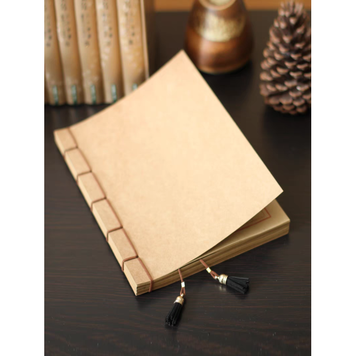 16k純色手工古風線裝牛皮紙空白竪行筆記記事本手賬本抄經本家譜