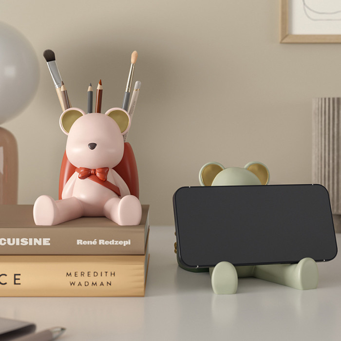 熊筆筒兼支架擺件-綠色