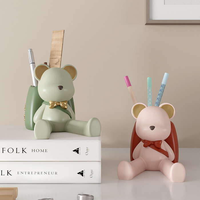 創意筆筒辦公室學生桌面收納盒輕奢暴力熊擺件教師節生日禮物支架