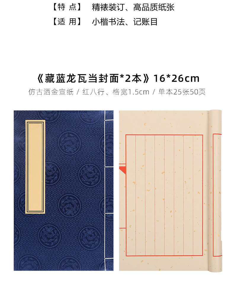藏藍色龍瓦噹50張100頁(竪的8行)