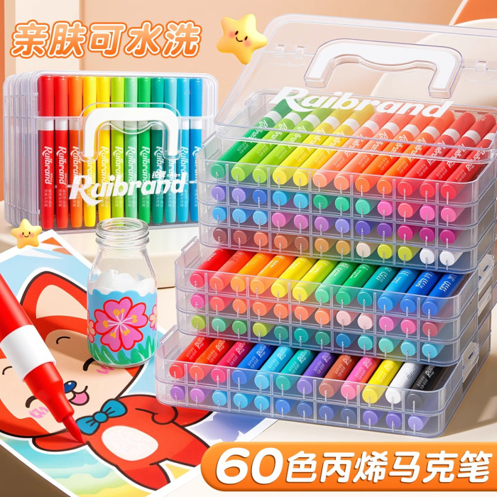 丙烯馬克筆小學生美術專用軟頭畫筆兒童無毒可洗不髒手水彩筆幼兒