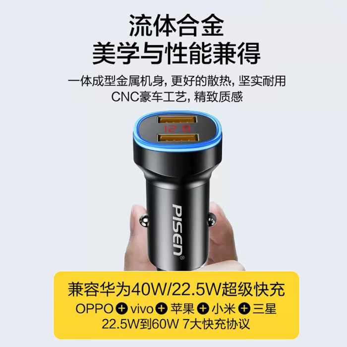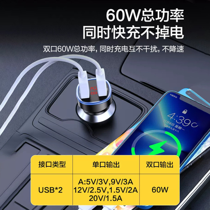 品勝車用充電器60W超級快充適用蘋果15自帶氛圍燈轉換插頭車充USB