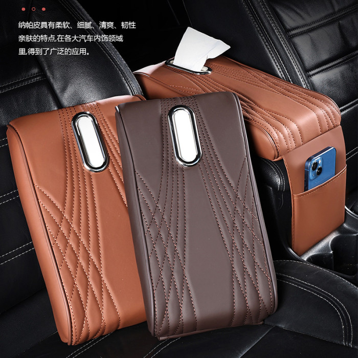 汽車扶手箱墊帶紙巾盒收納袋多功能扶手箱增高墊天使紋款