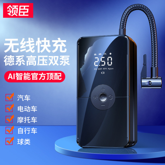 領臣車用充氣泵無線數顯充電款可攜式電動車汽車輪胎打氣泵大功率