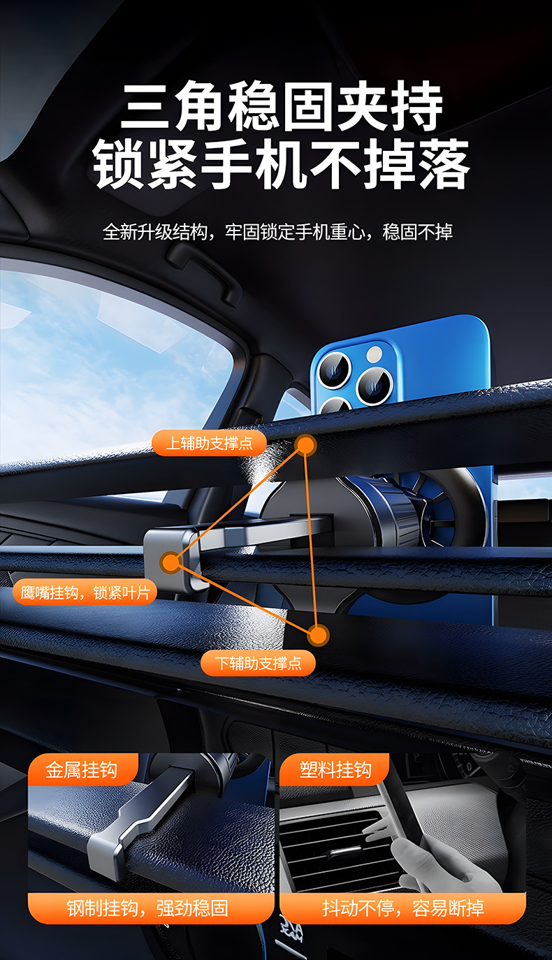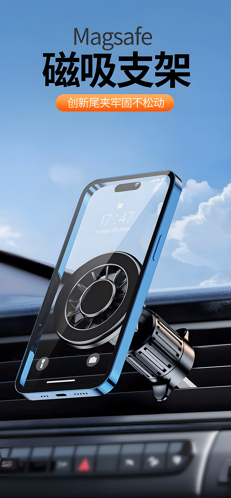 車用手機支架Magsafe出風口磁吸汽車磁鐵吸盤中控儀表台導航支架