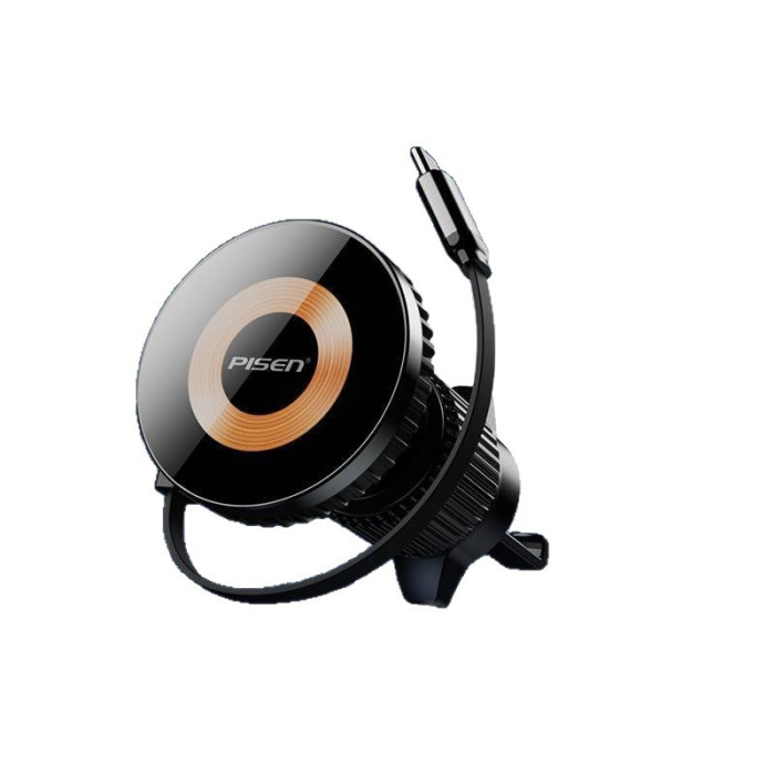 品勝PD15W車用手機支架無線充磁吸自帶伸縮線車用出風口導航支架