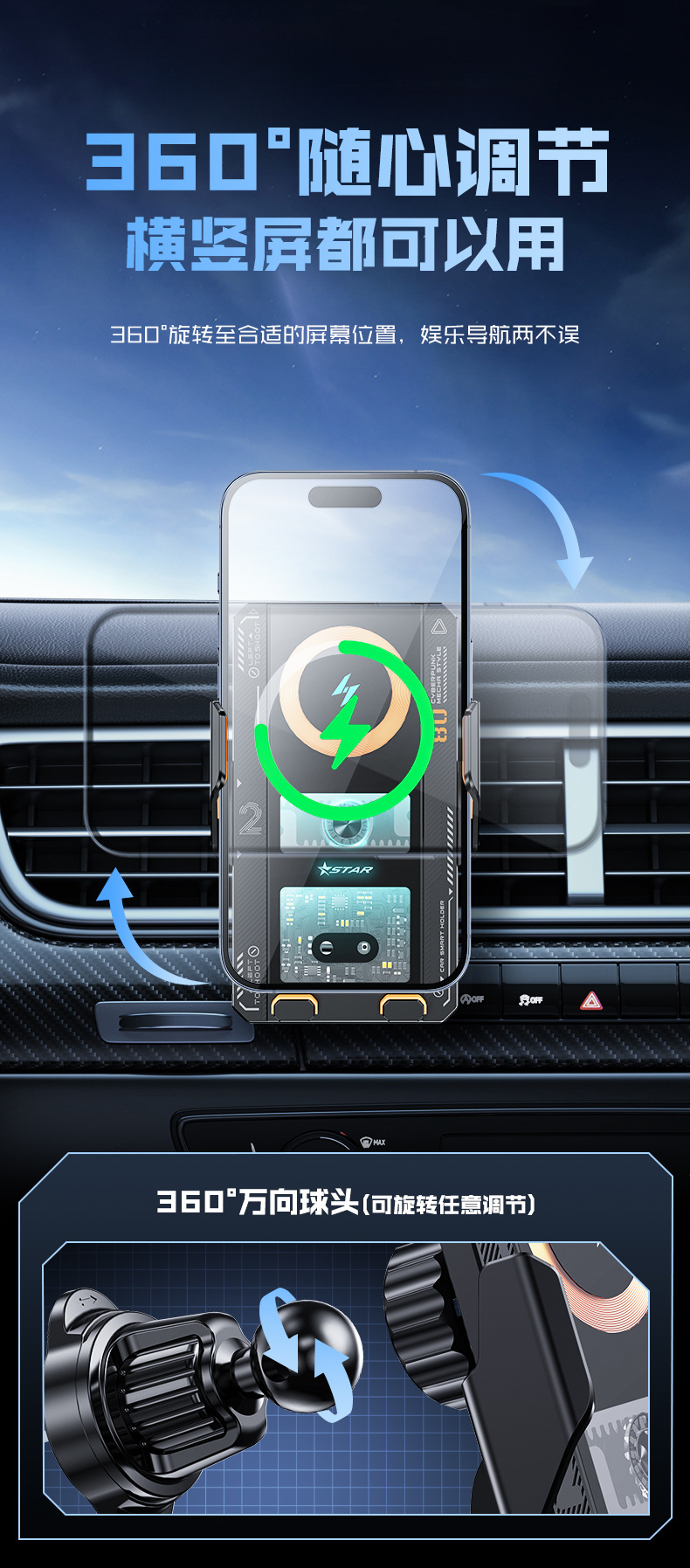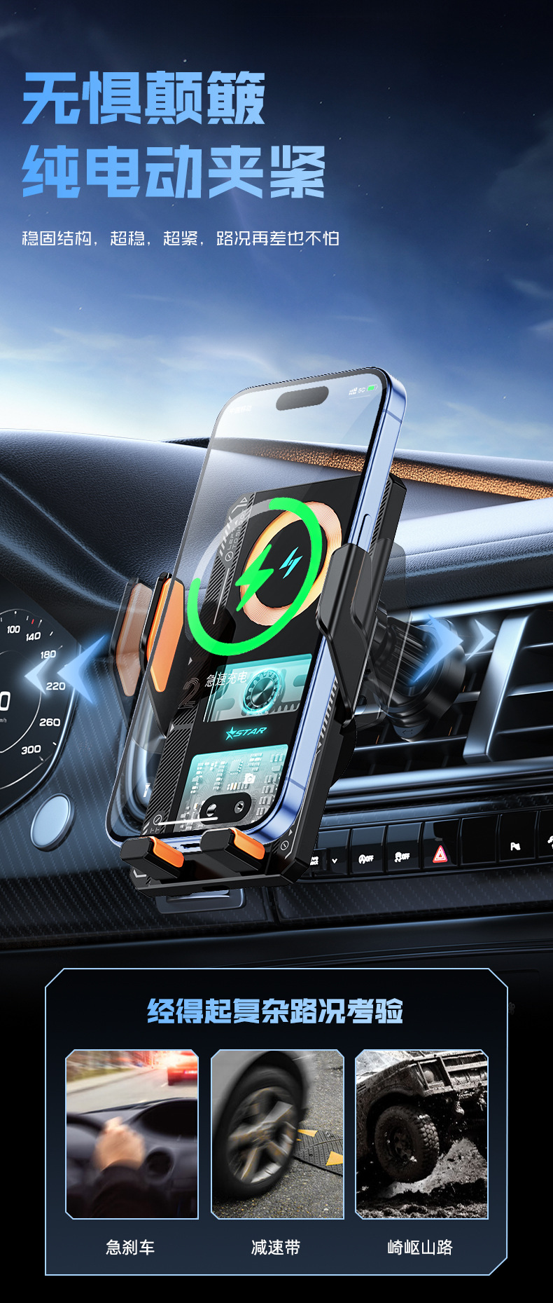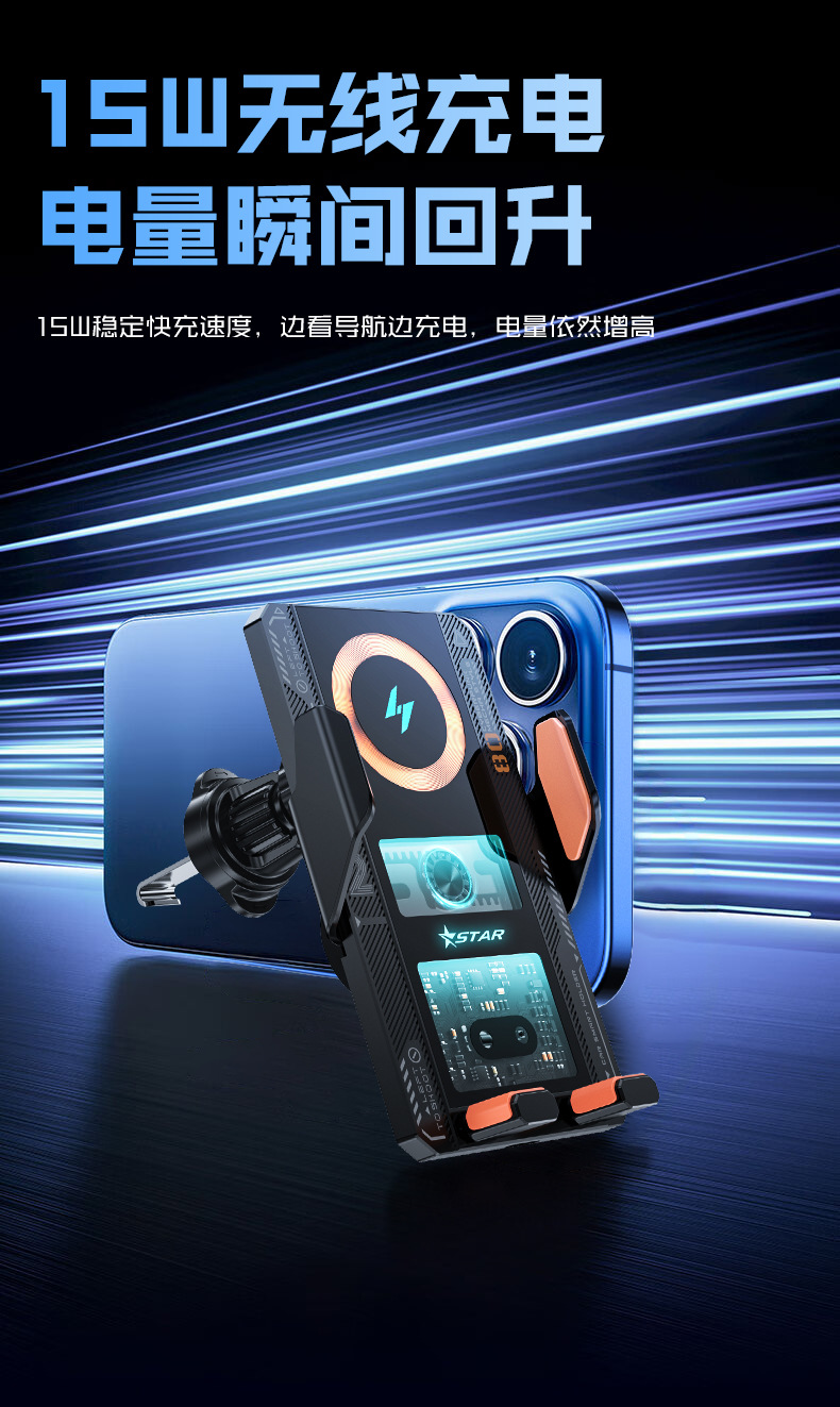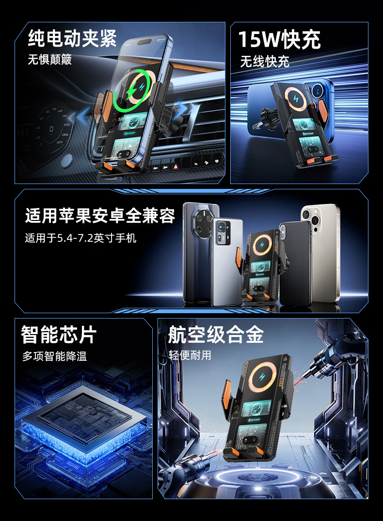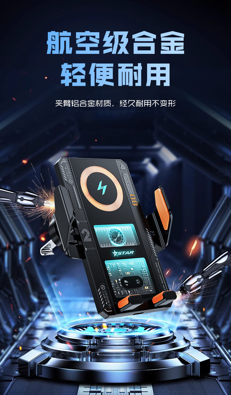 新款機甲風車用無線充高檔網紅款自動感應手機支架汽車車用支架