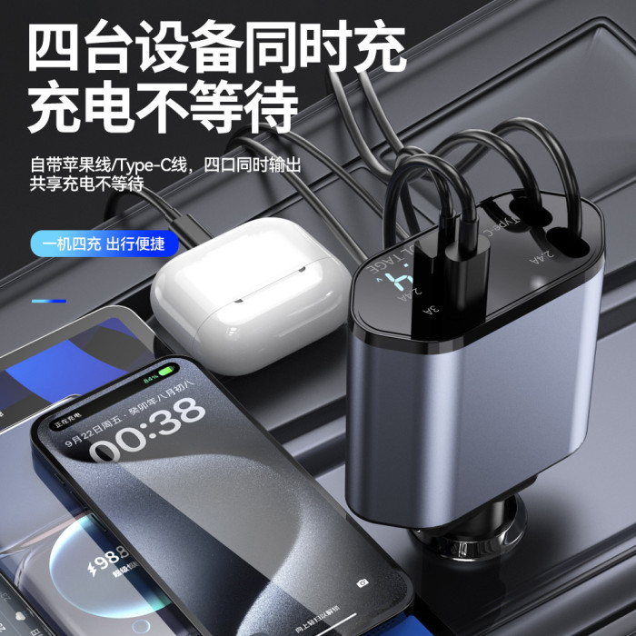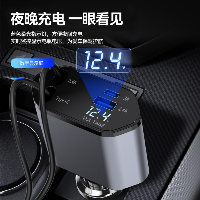 新款車用充電器點菸器 超級快充數顯閃充適用安卓蘋果汽車轉換頭