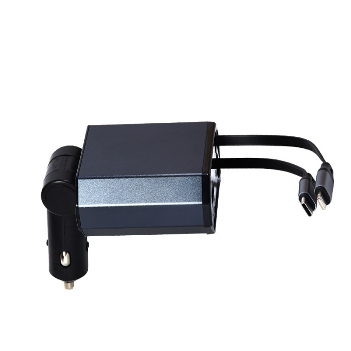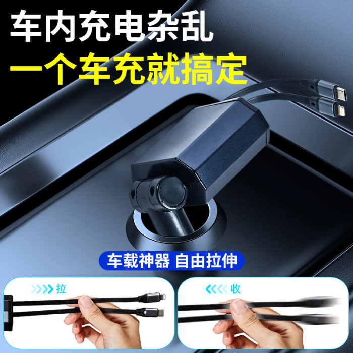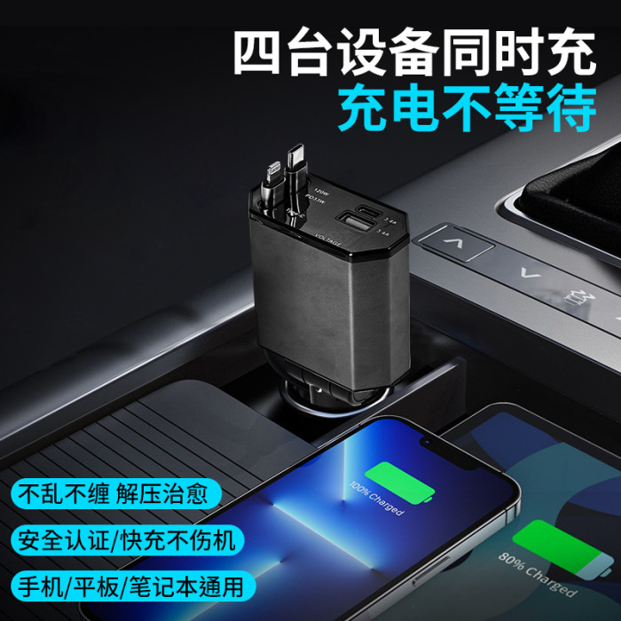 新品車用充電器 PD33W超級快充四合一充電器可伸縮拉伸線車充