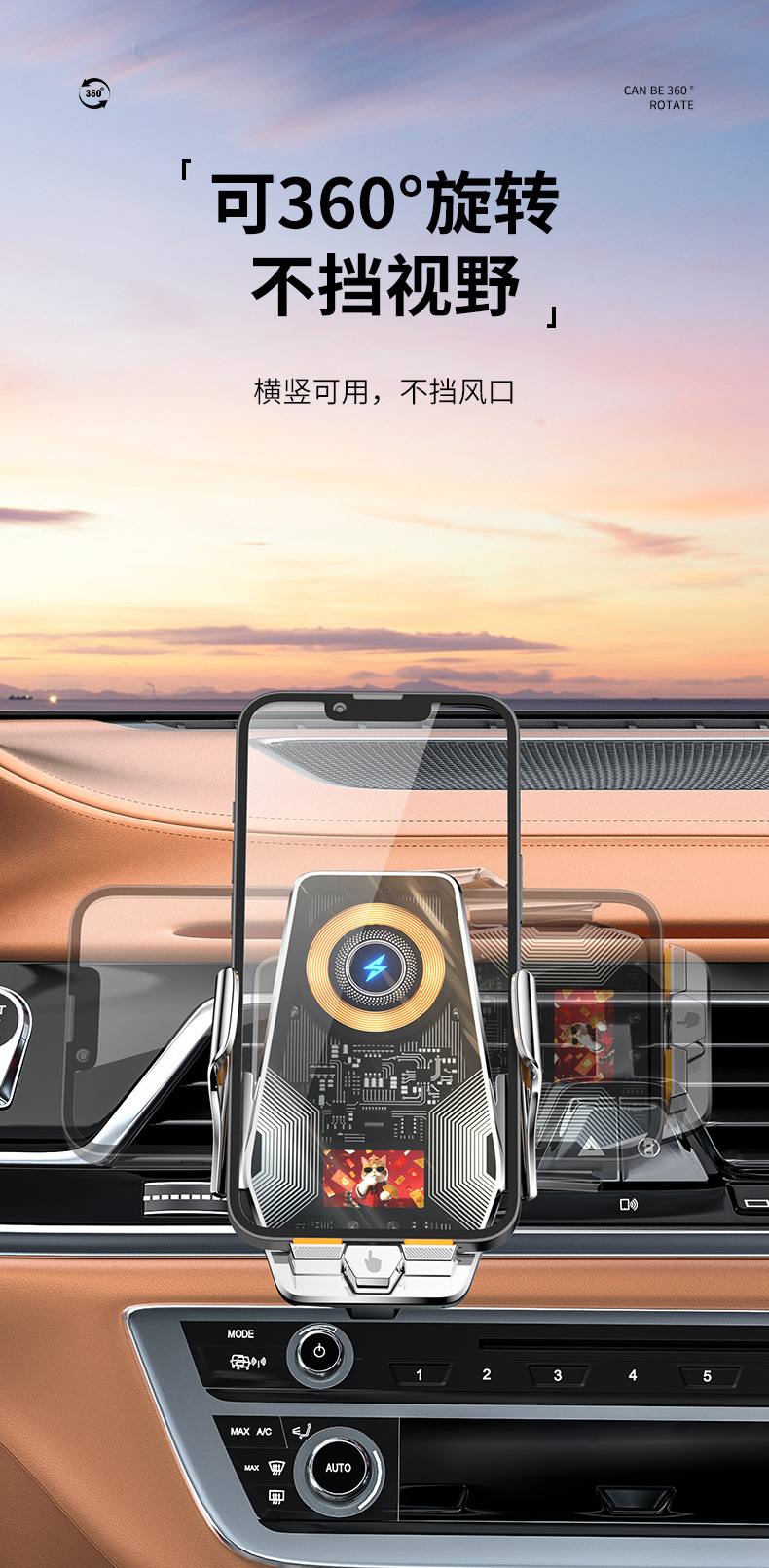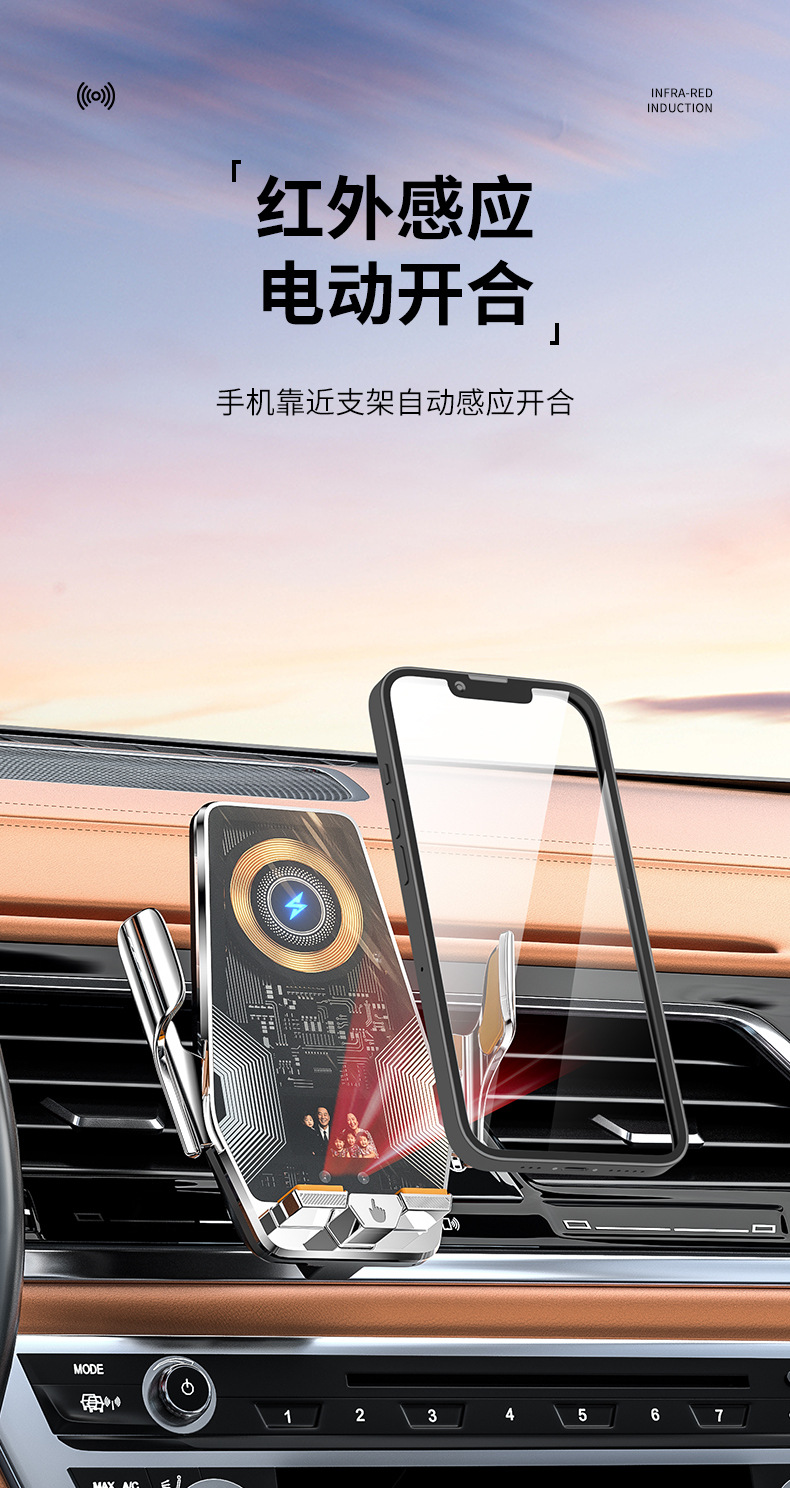 車用手機支架紅外自動開合15W無線充彩色汽車用品