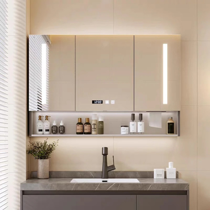 智能浴室鏡櫃門酒店洗手間鏡鋁合金除霧led鏡箱門框定