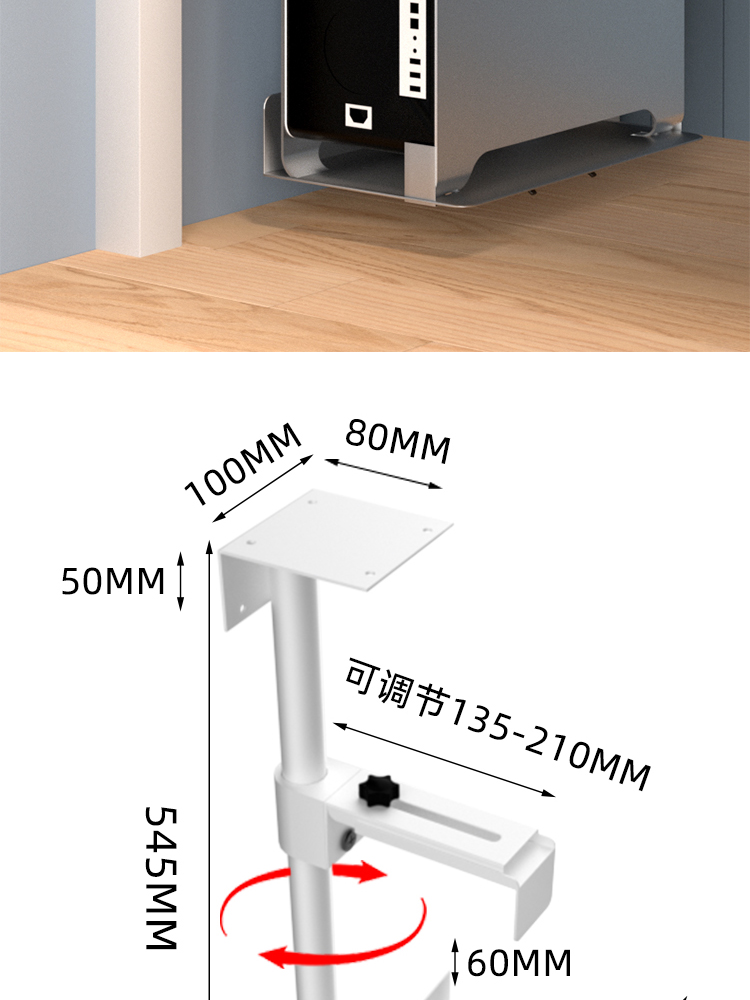 懸掛主機托架桌上型電腦主機吊架機箱懸空壁掛支架辦公桌下電腦掛架