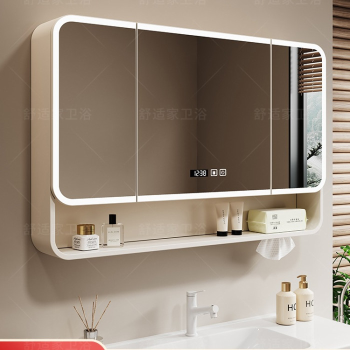 圓弧智能浴室鏡櫃單獨鏡箱衛生間掛牆式收納一體置物櫃帶燈梳妝鏡