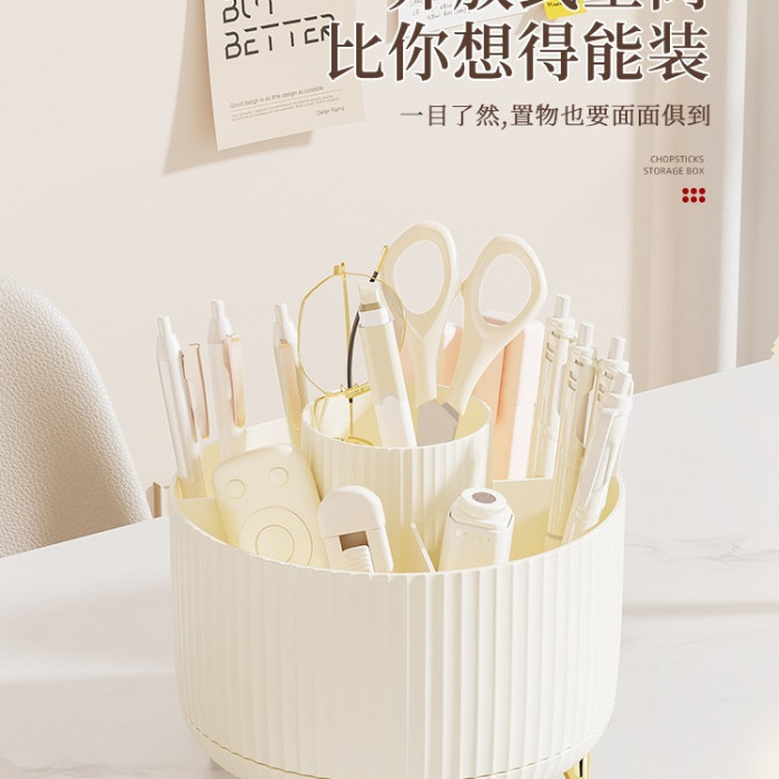 旋轉筆筒辦公室桌面文具收納盒男孩女孩兒童書桌上置物輕奢感