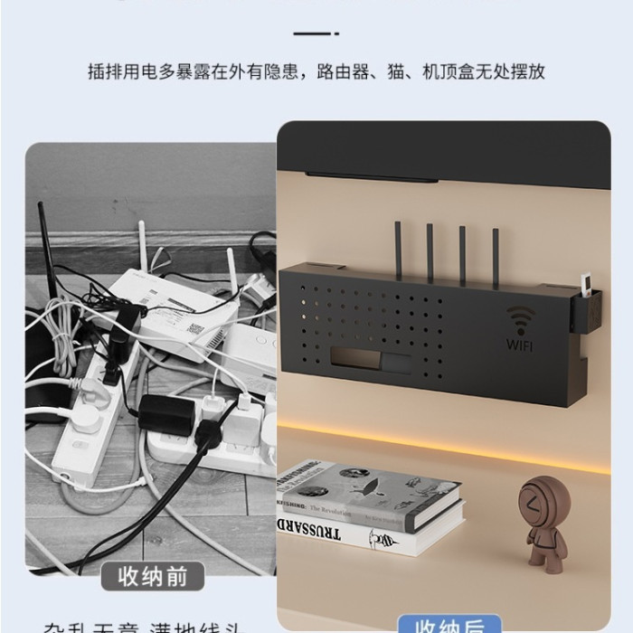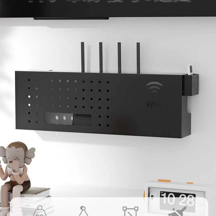路由器收納盒高顔值免打孔無線wifi電視機機頂盒置物架光貓放置架