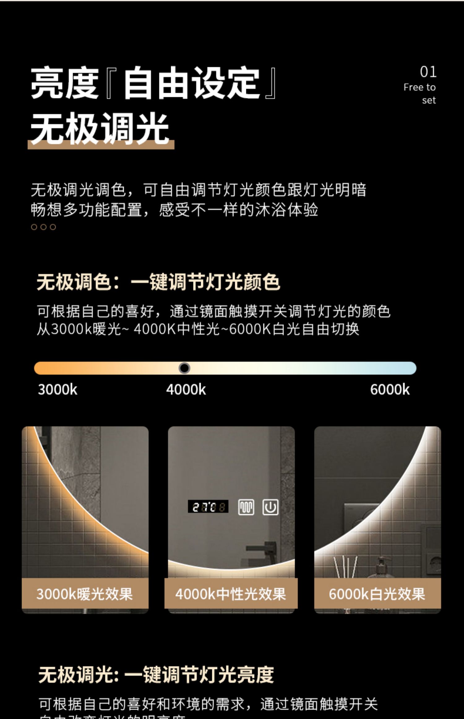 | 顔色 | 【透光款】智能語音+三色光+時間溫度 +除霧+觸摸 |