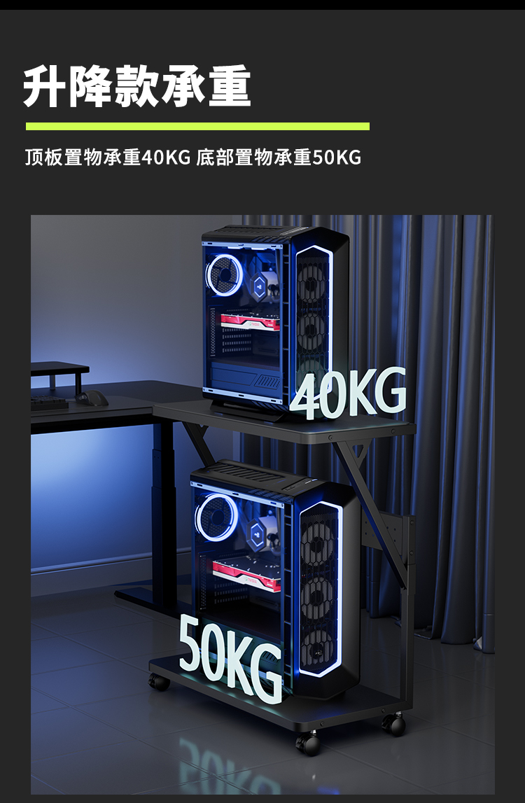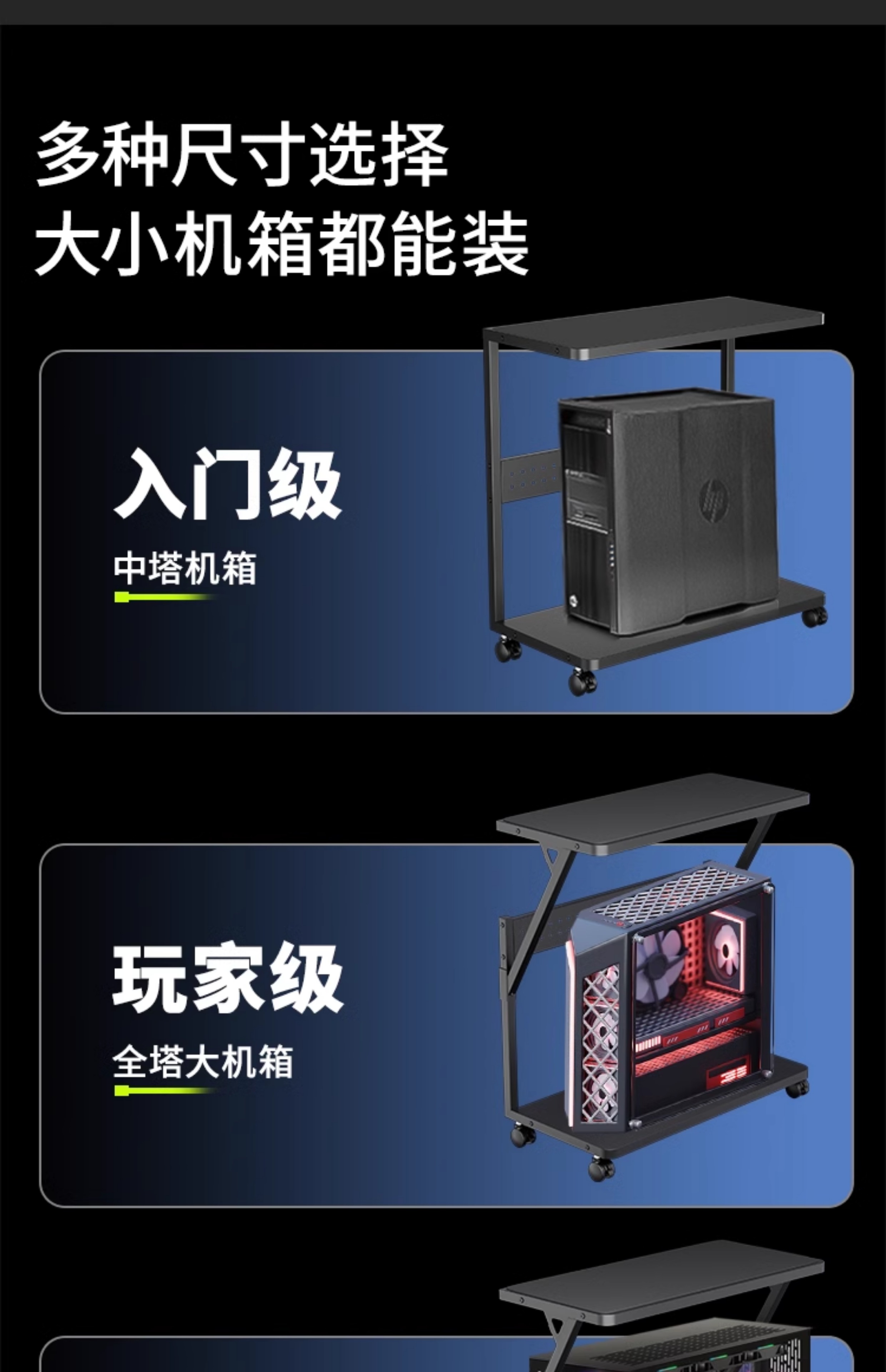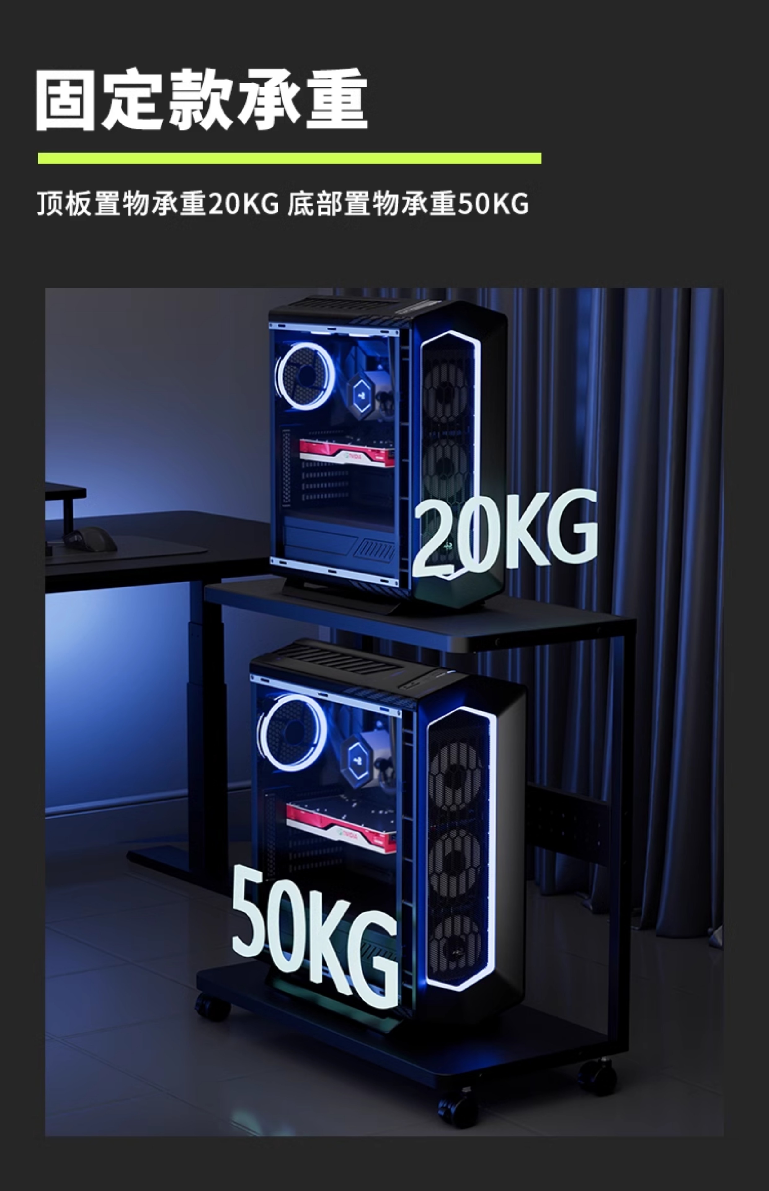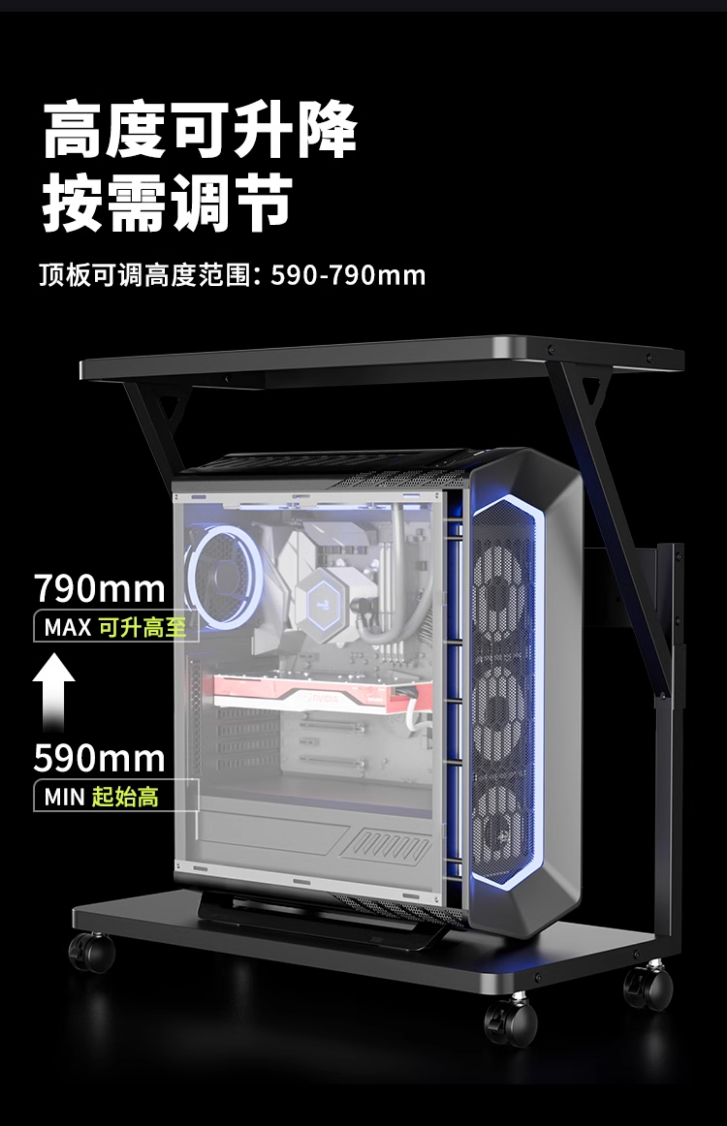 海景房桌上型主機箱支架開放式主機托架兩層可移動電腦桌底座置物架
