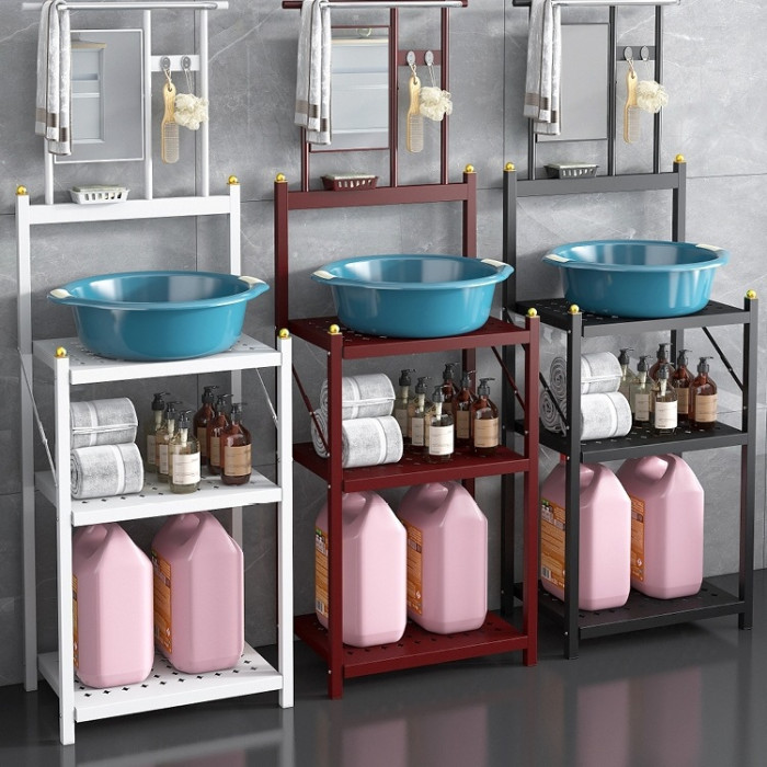 洗臉盆架子落地家用洗臉架農村老式多層置物盆架免折曡臉盆架