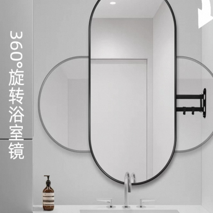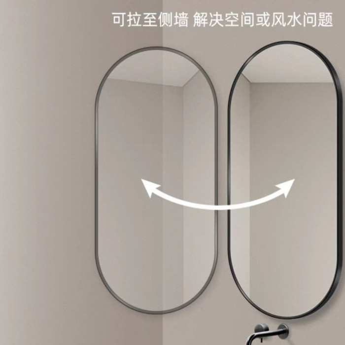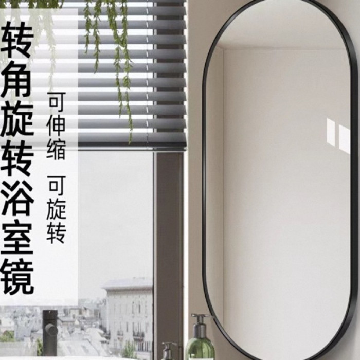 衛生間可旋轉鏡子風水鏡掛牆橢圓形可伸縮推拉側邊轉角浴室折曡鏡