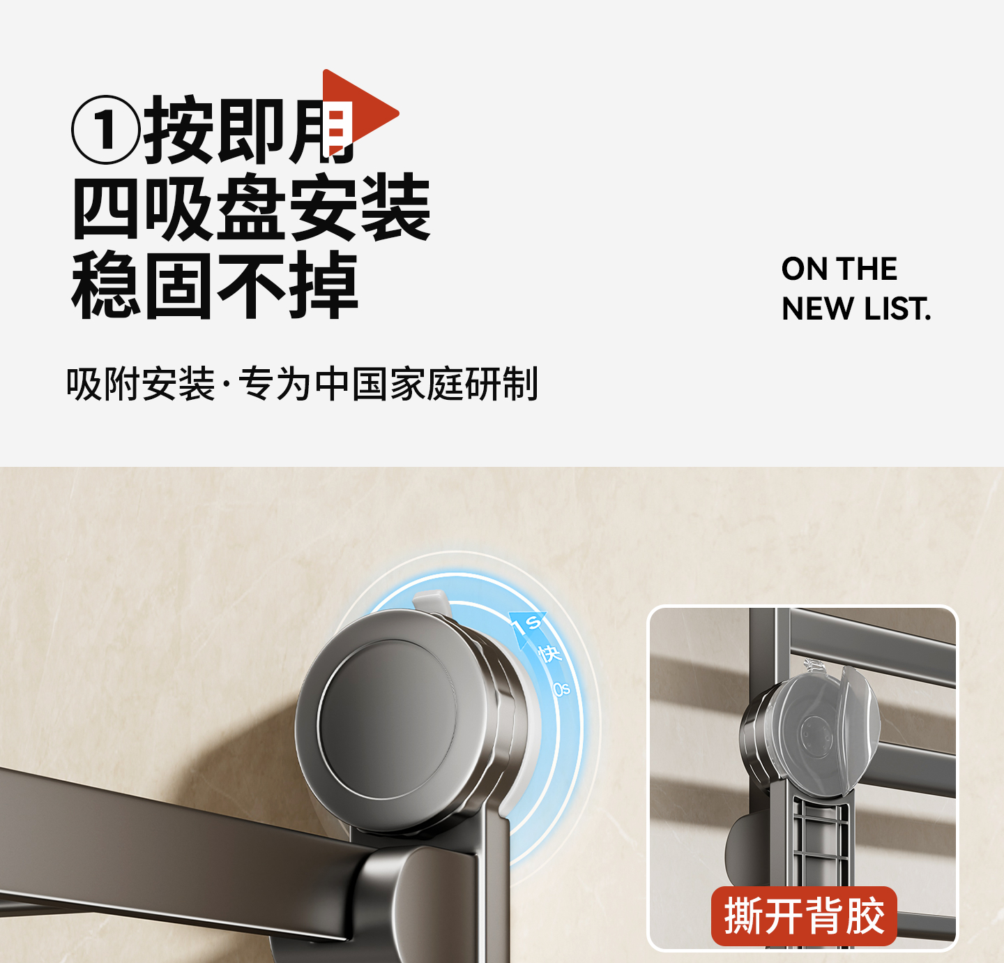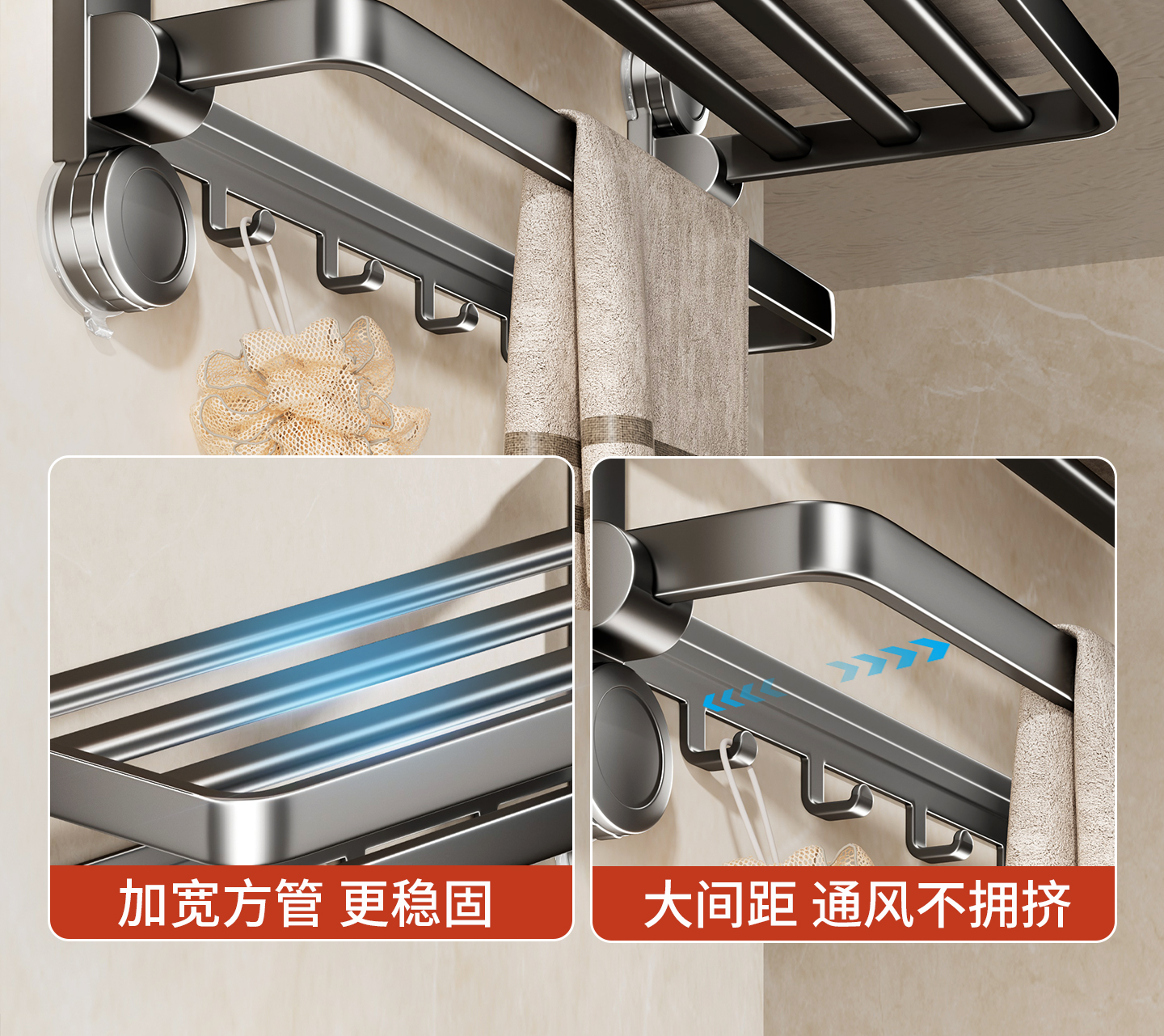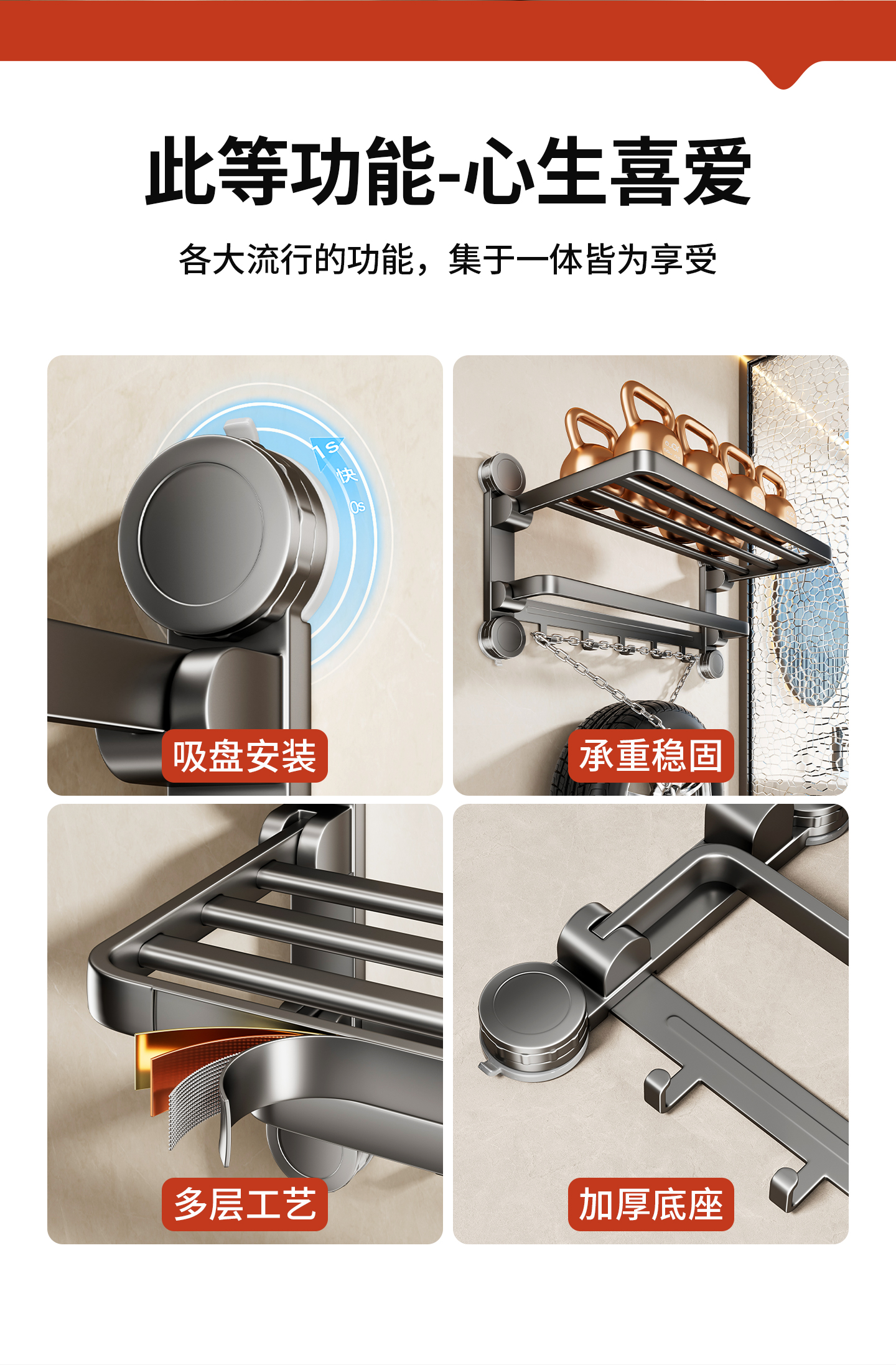 吸盤毛巾架衛生間免打孔浴室置物架洗澡間一體掛桿厠所收納浴巾架