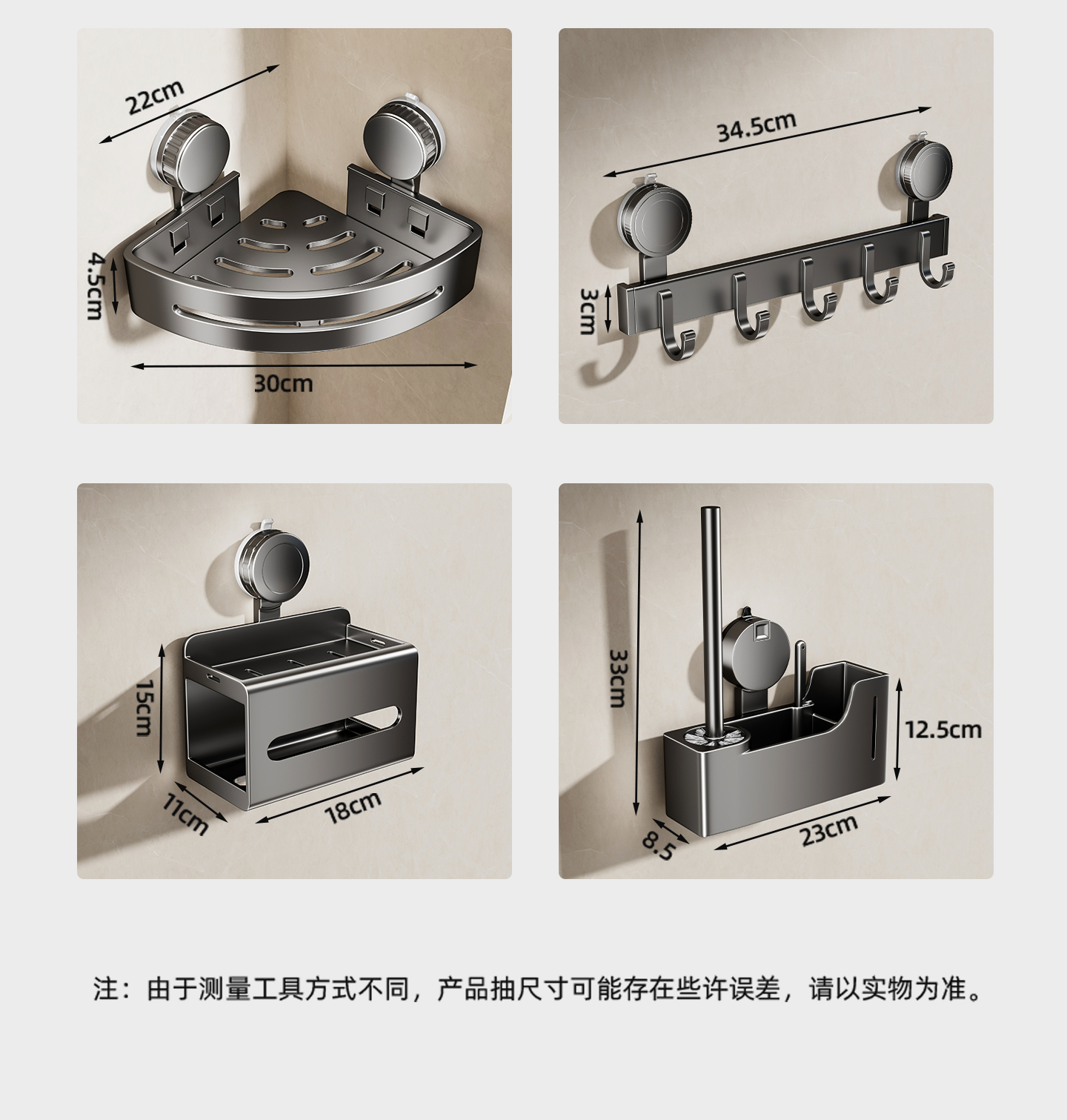 | 尺寸 | 升級板籃六件套【板籃四吸磐60CM+雙杆+紙巾盒+馬桶刷+雙層三角籃+排鉤】 |