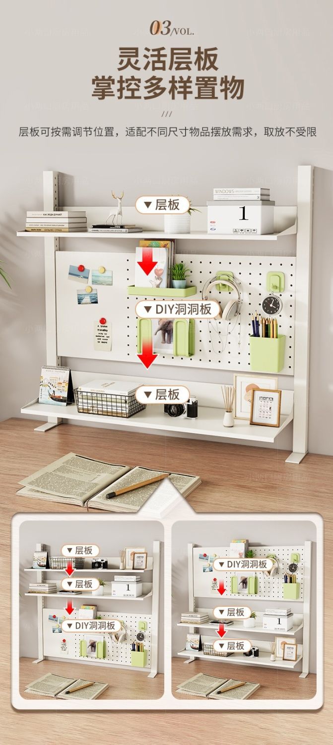 桌面置物架家用書桌洞洞書架多層鐵藝可調磁吸收納置物架家用