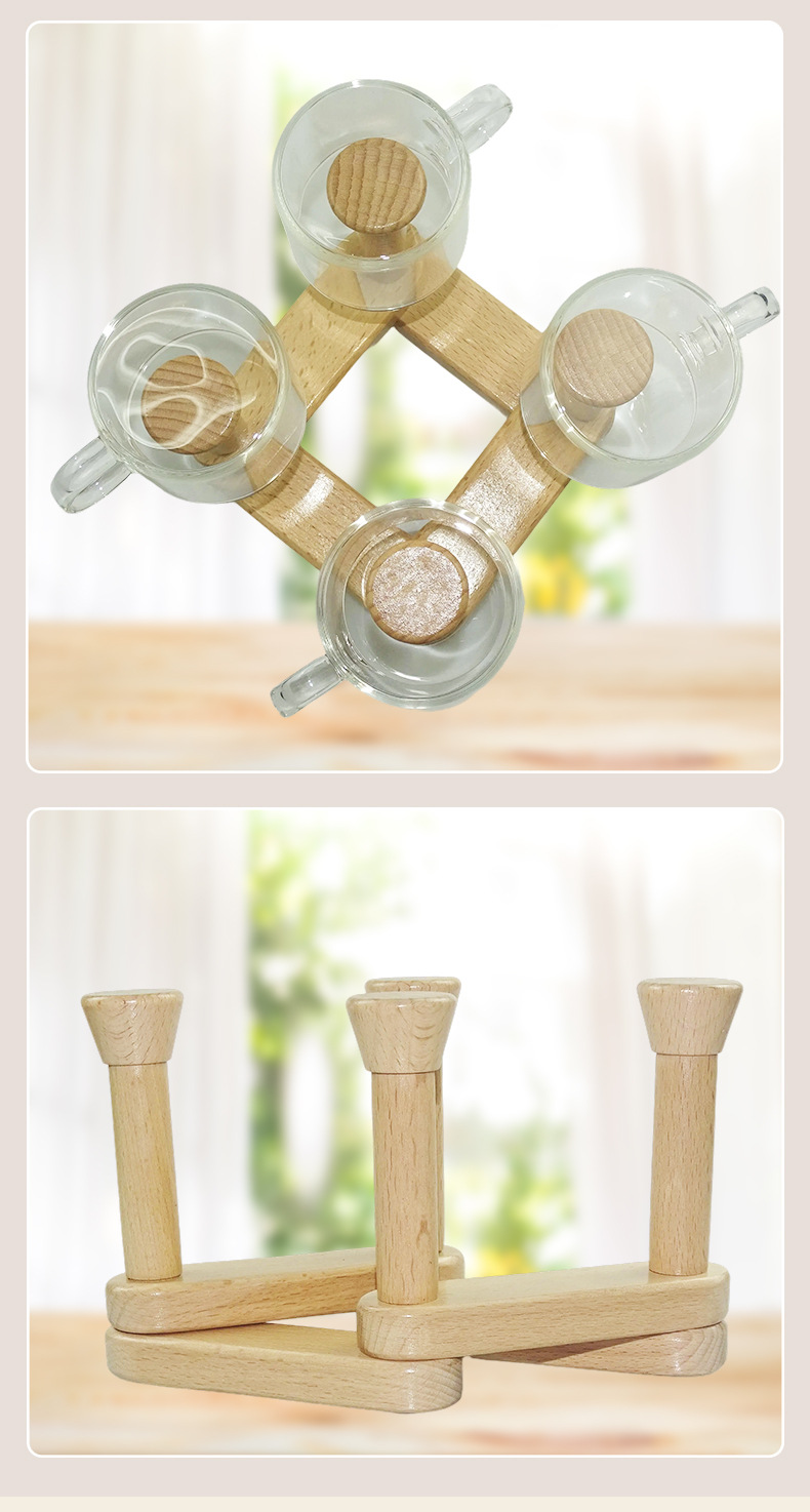 可折曡拆裝瀝水杯架木質折曡杯子收納架創意廚房置物架瀝水架