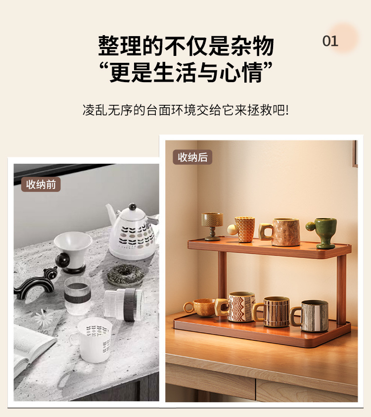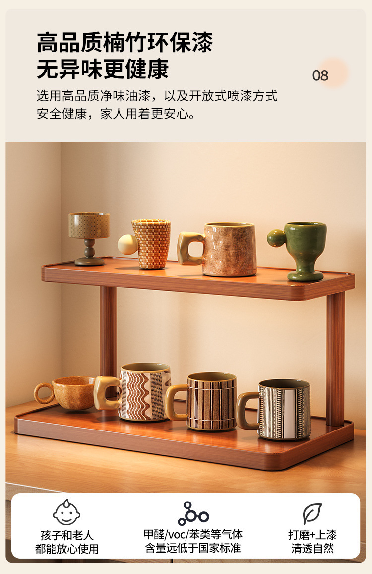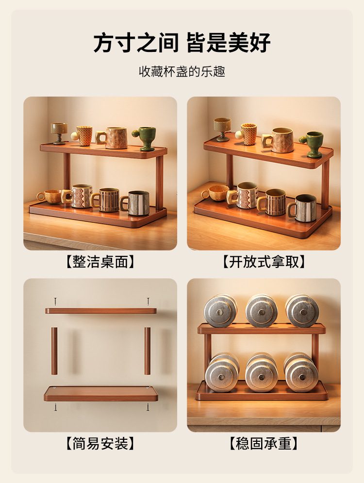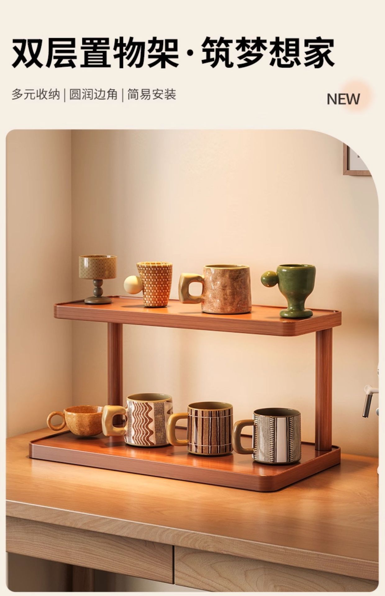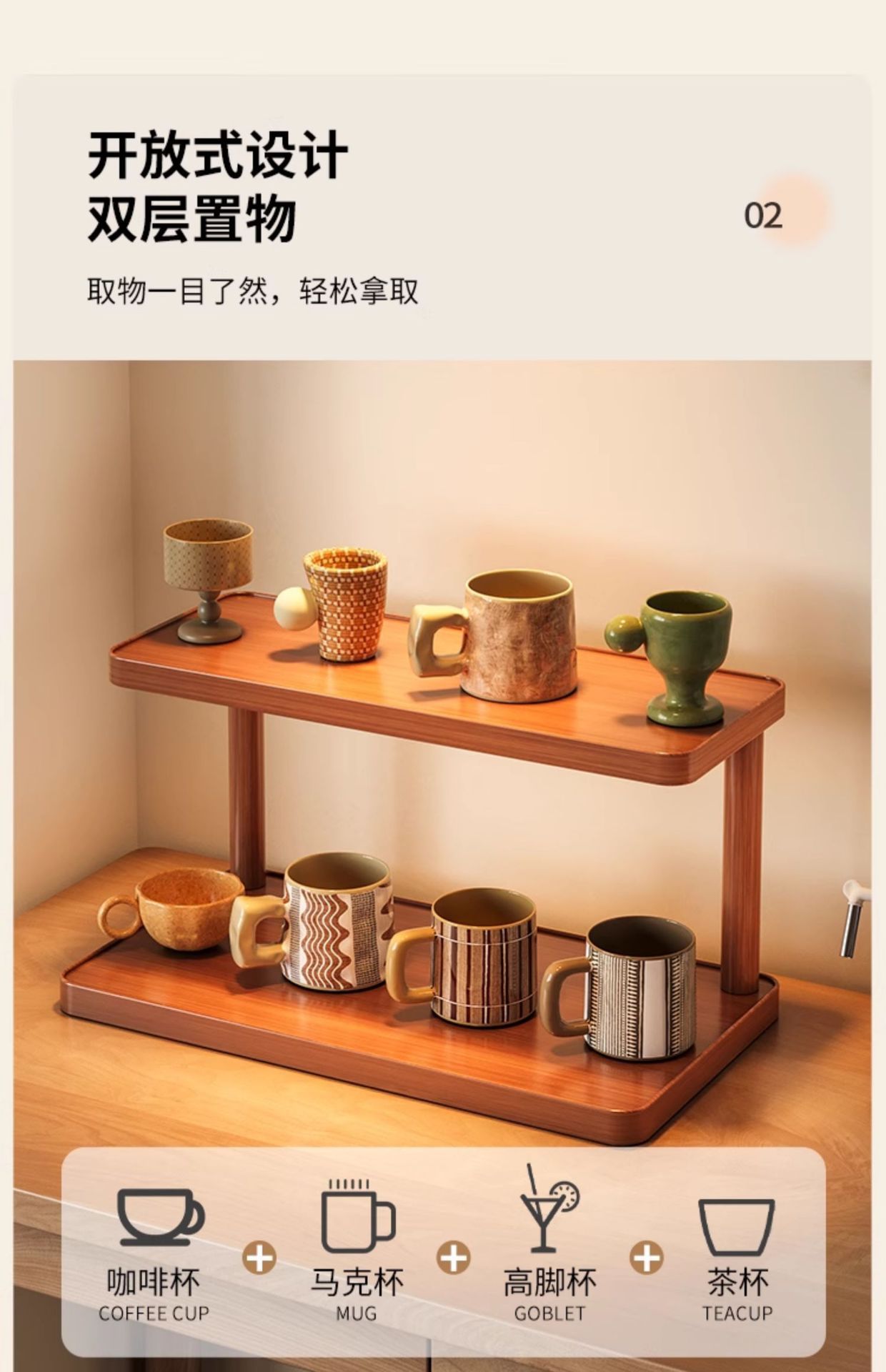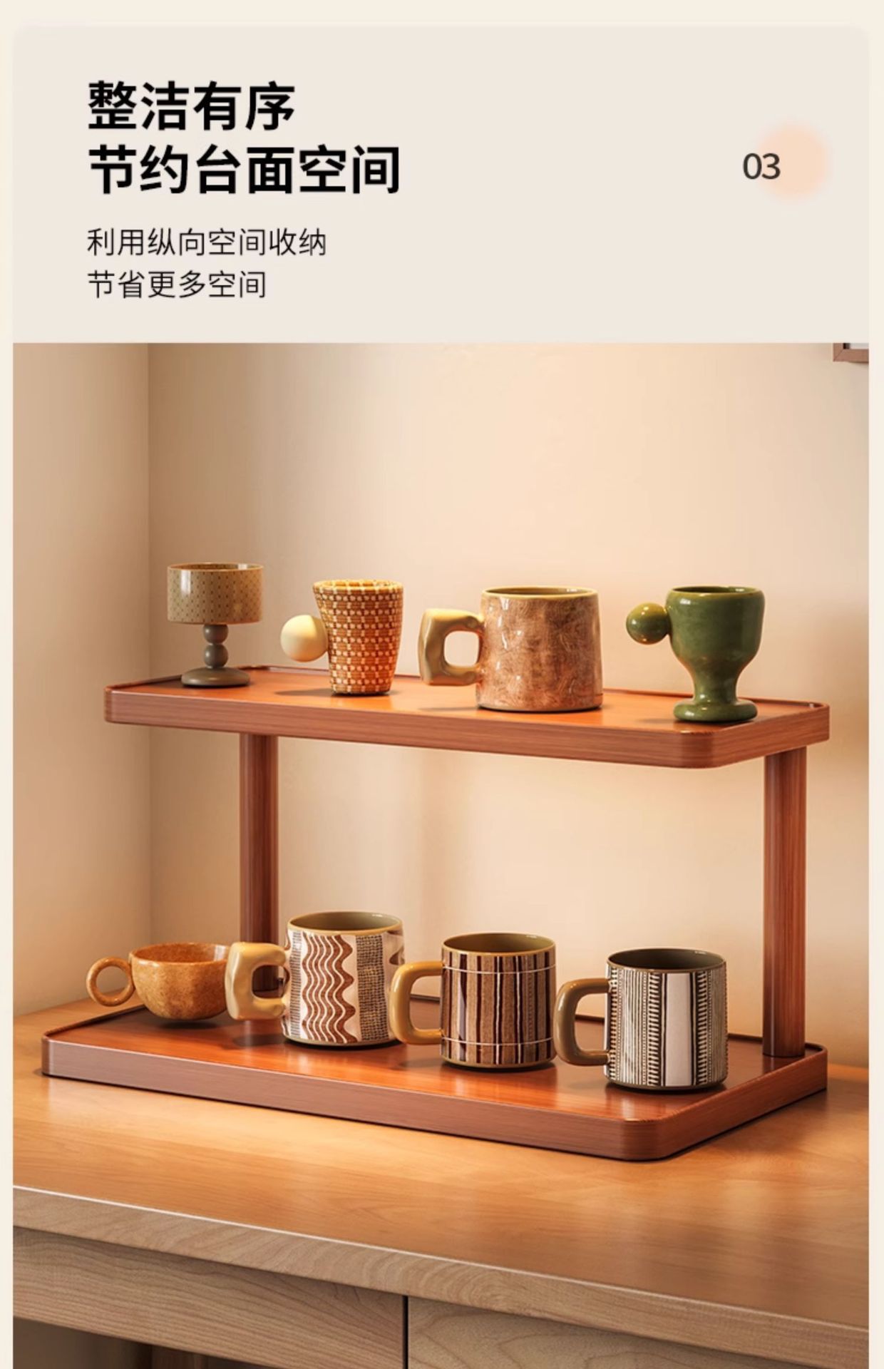 桌面分層收納置物架餐桌杯子收納桌面水杯咖啡杯茶具整理展示架子
