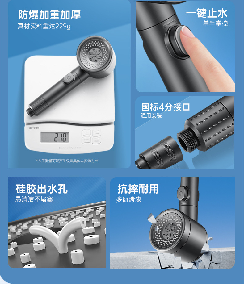 全新升級戴噴增壓花灑噴頭超強加壓浴室洗澡過濾淋浴頭大出水套裝