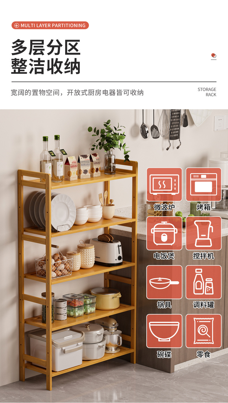 廚房置物架台面窄縫落地客廳臥室房間收納架楠竹多層靠牆儲物架子