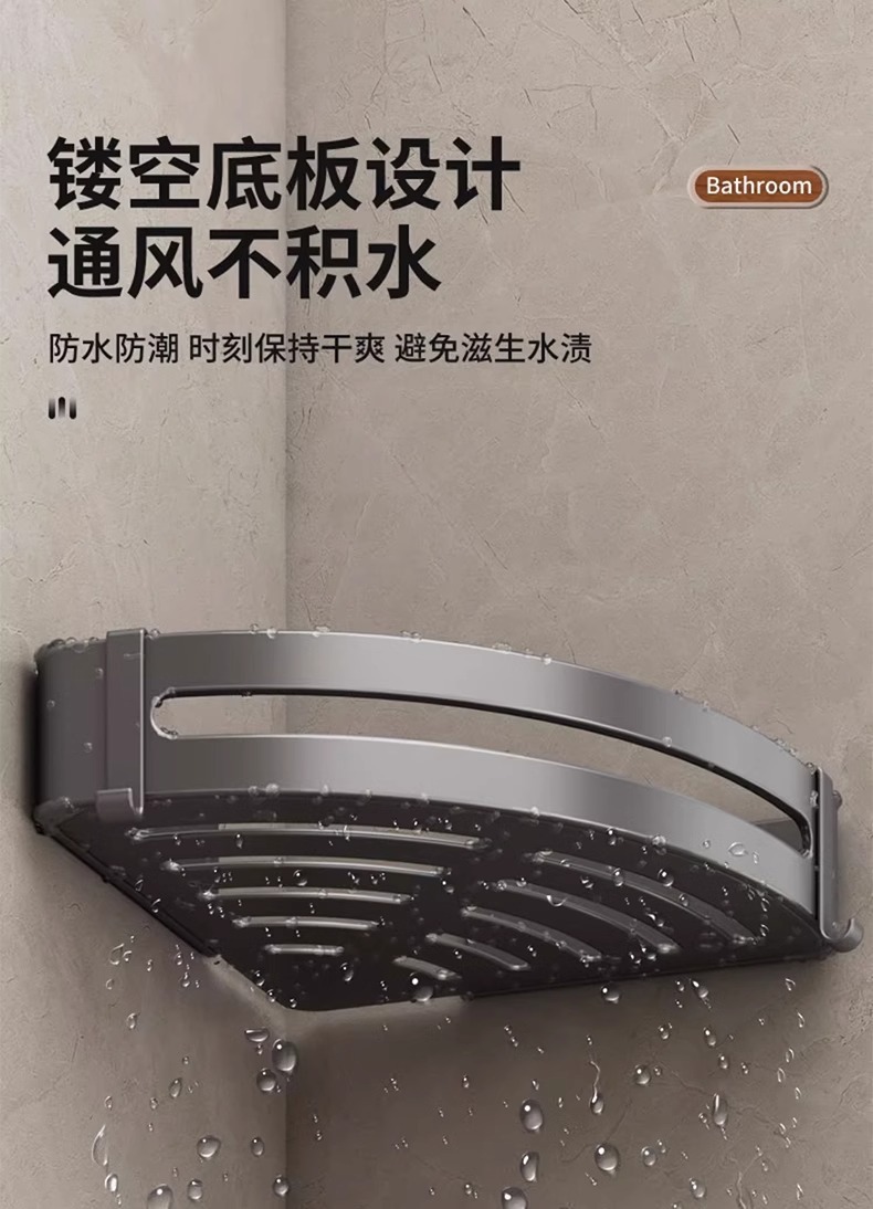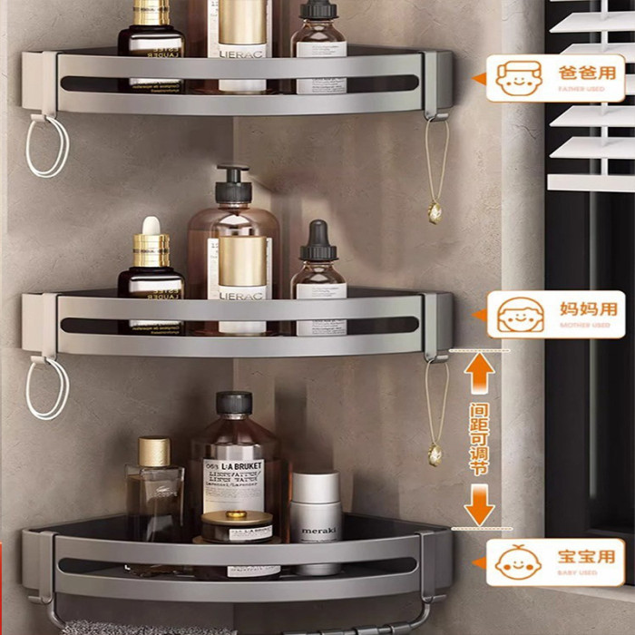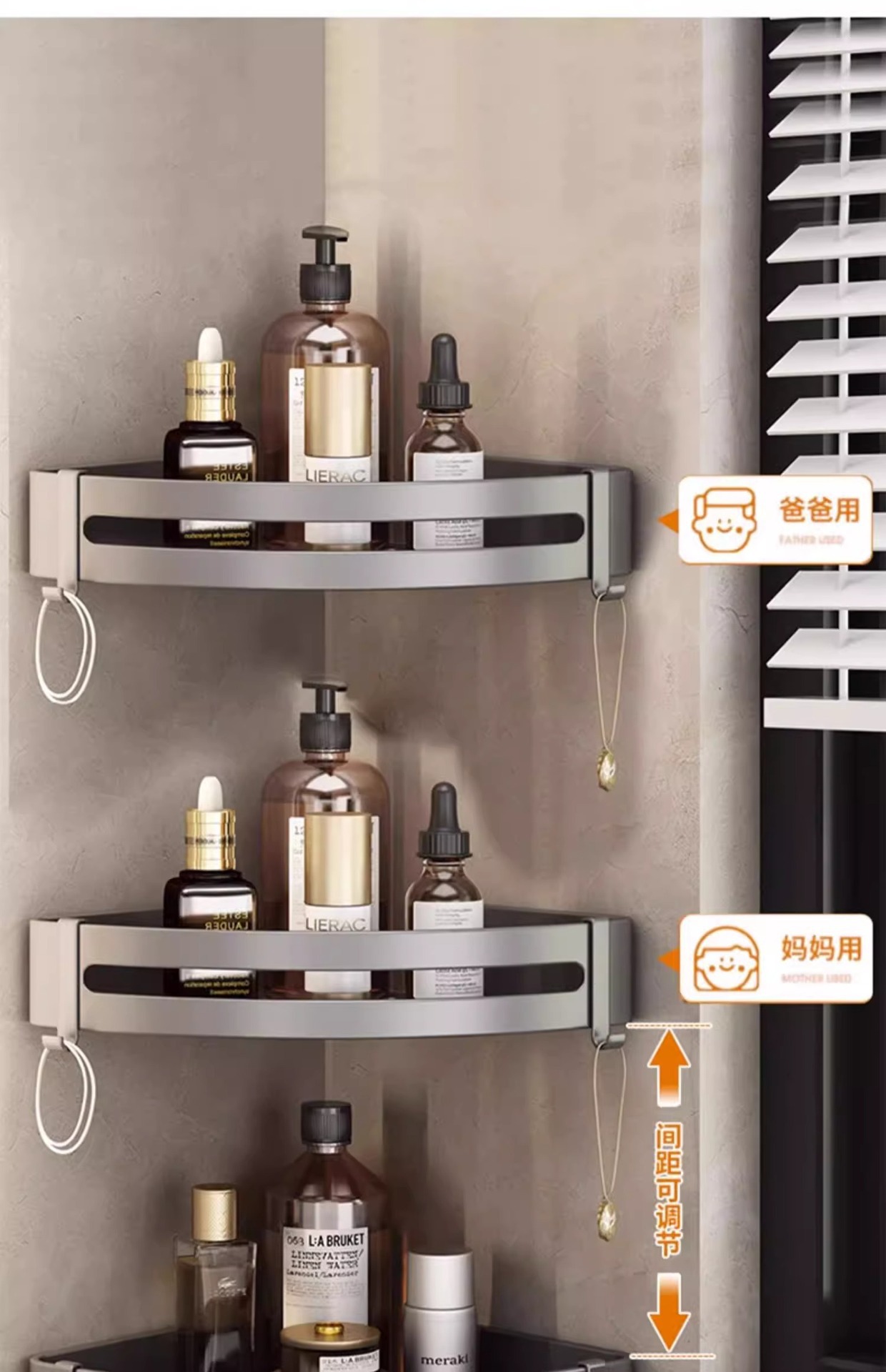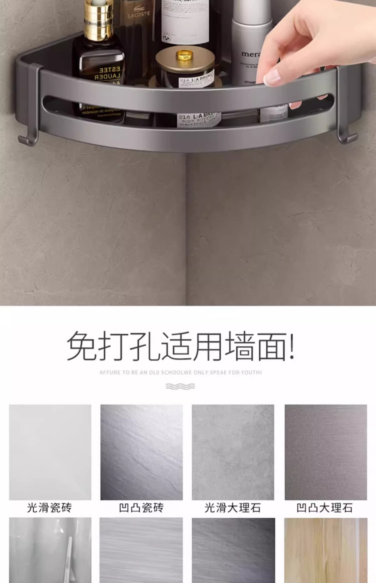 鋁製浴室置物架衛生間厠所洗手間洗漱台牆上免打孔壁掛三角收納架