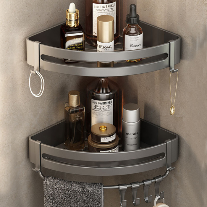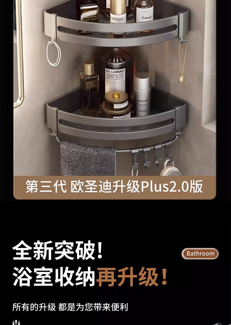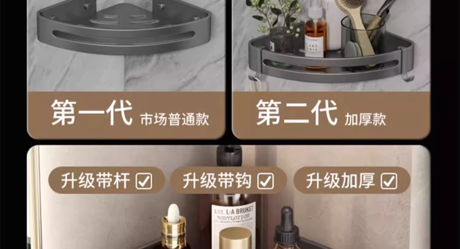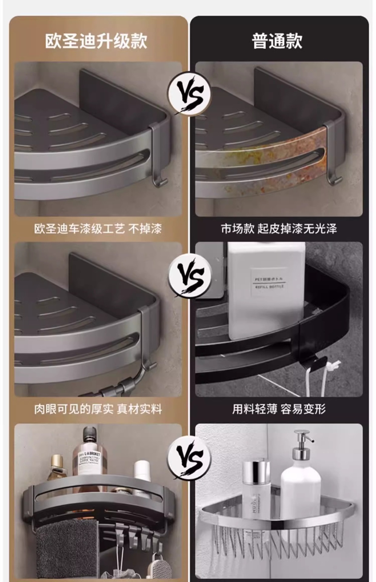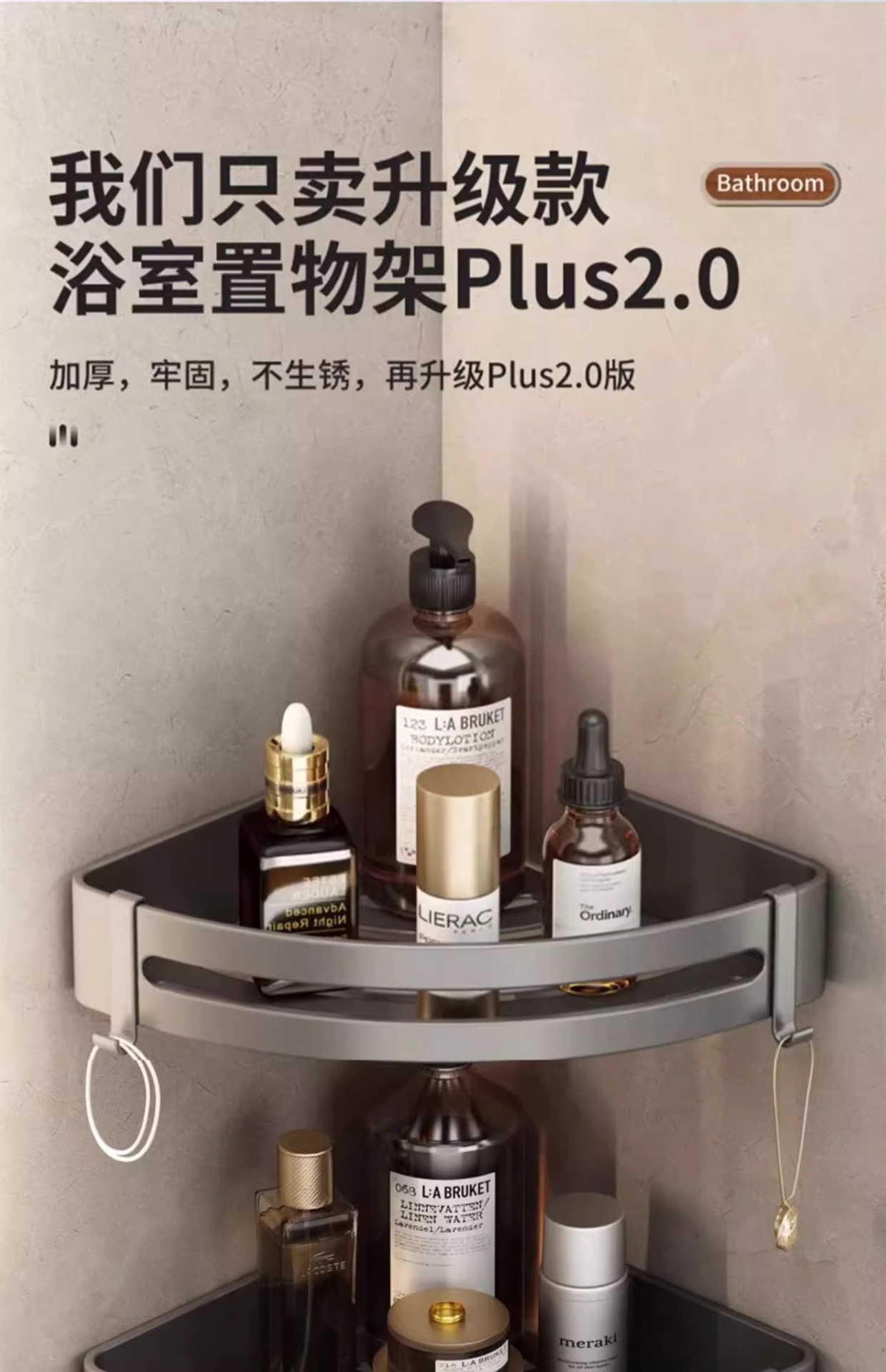 鋁製浴室置物架衛生間厠所洗手間洗漱台牆上免打孔壁掛三角收納架