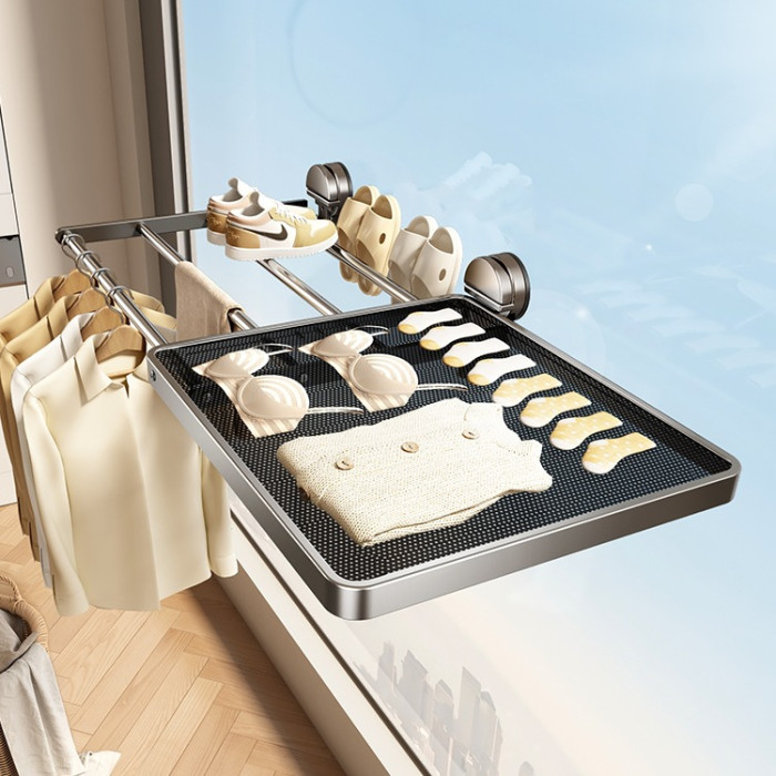 吸盤晾鞋架陽台曬鞋子伸縮窗戶晾衣架折曡晾曬網曬枕頭置物架